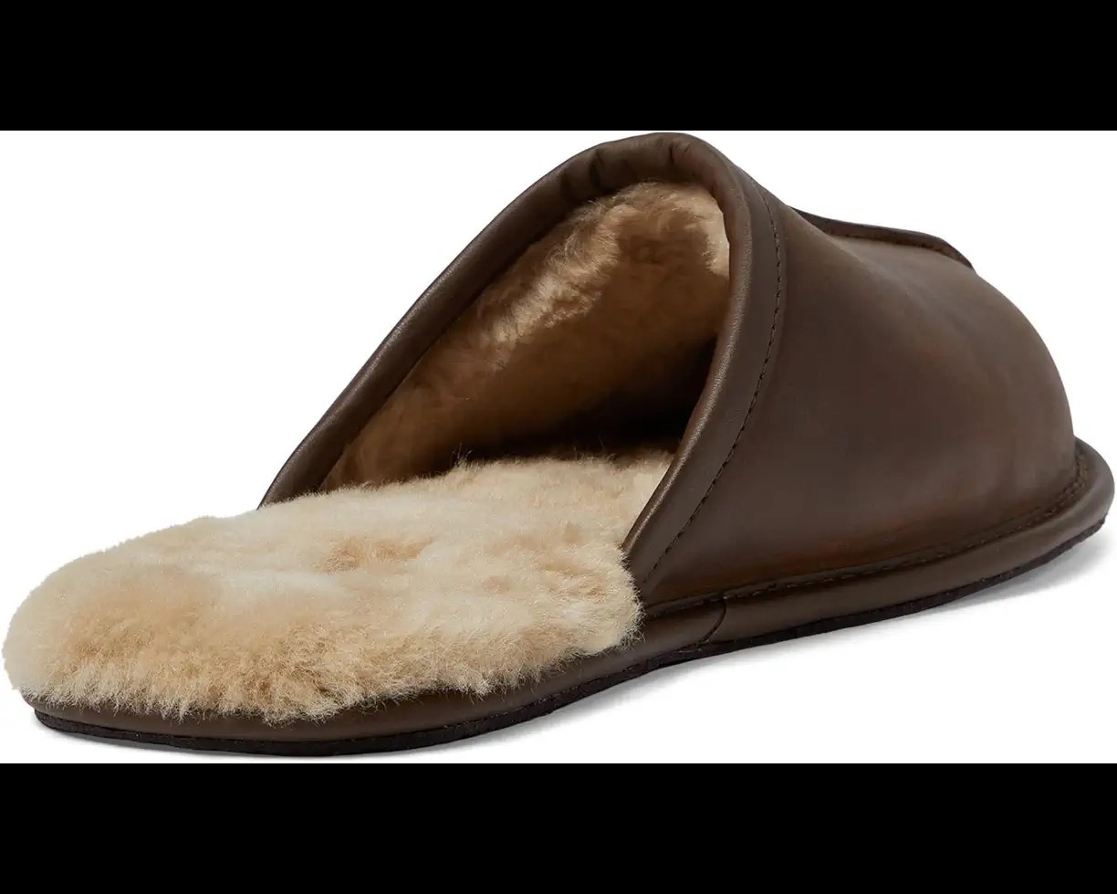 как выглядит UGG Scuff Indoor Slipper Slide Brown Leather Shearling Lined Men