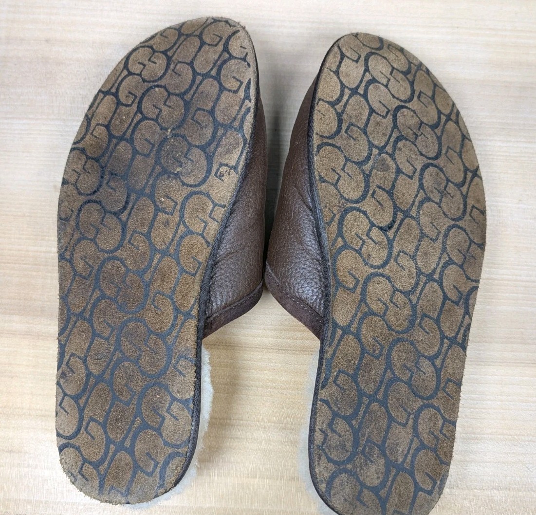 UGG Scuff Indoor Slipper Slide Brown Leather Shearling Lined Men's Sz 11