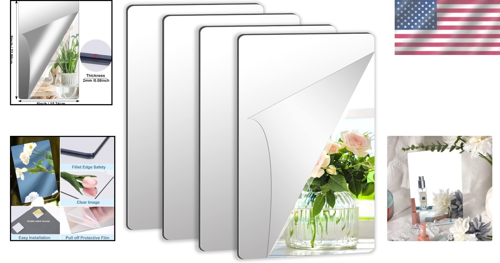 Versatile 4 Pack Self-Adhesive Acrylic Mirrors - 6x9 inches for Home and Office