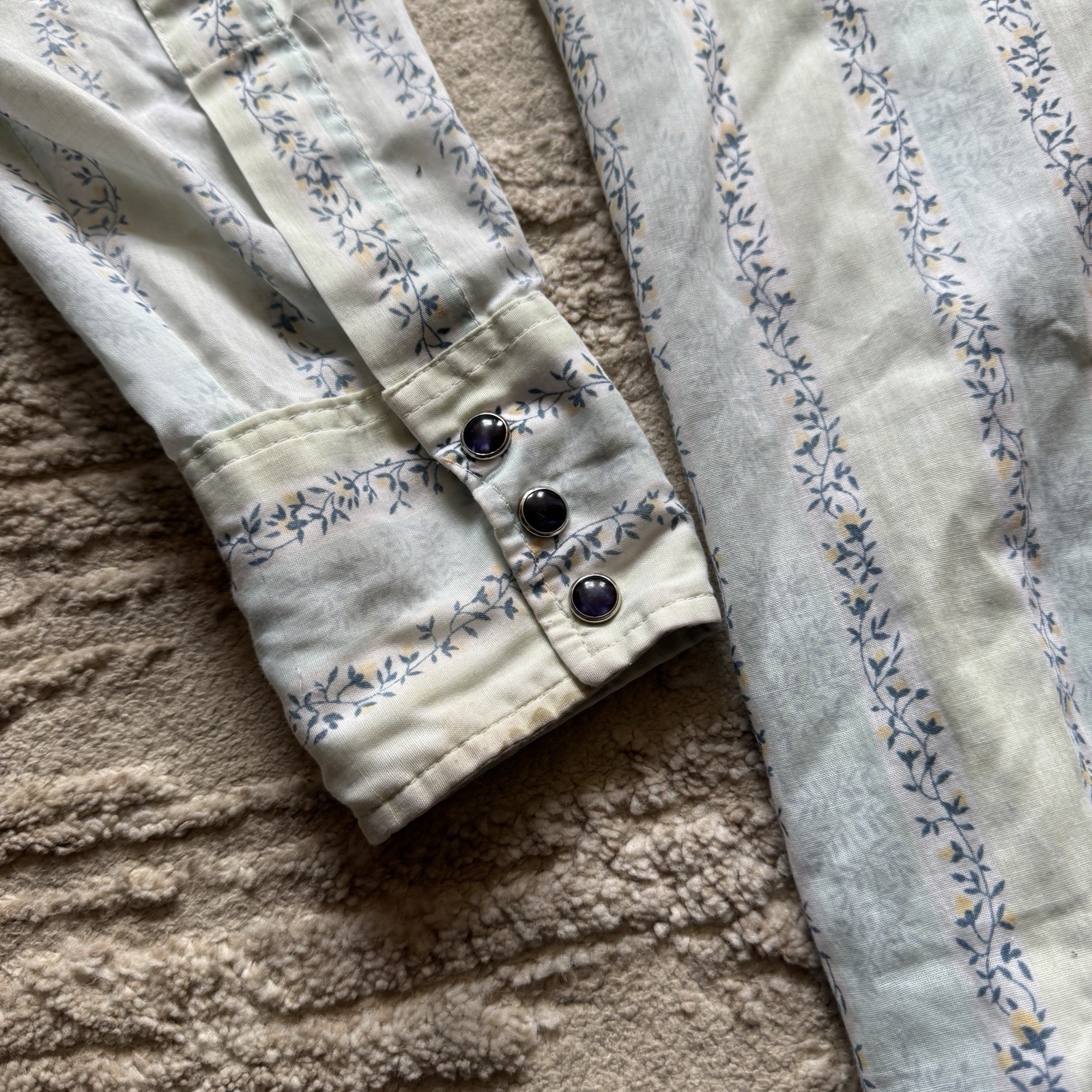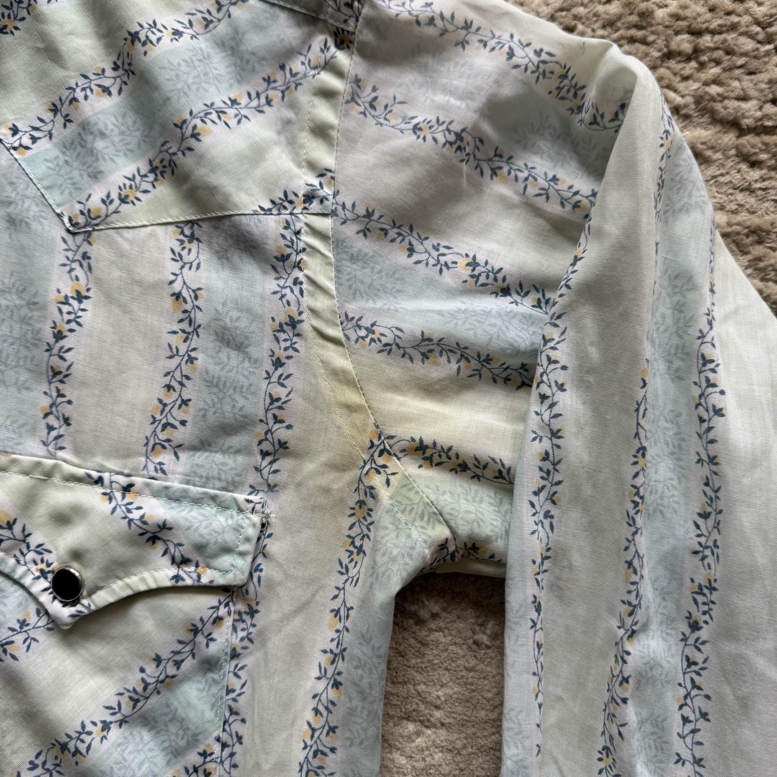 как выглядит Vintage 1970s Wrangler Floral Designed Western Pearl Snap Shirt Men s Medium USA фото