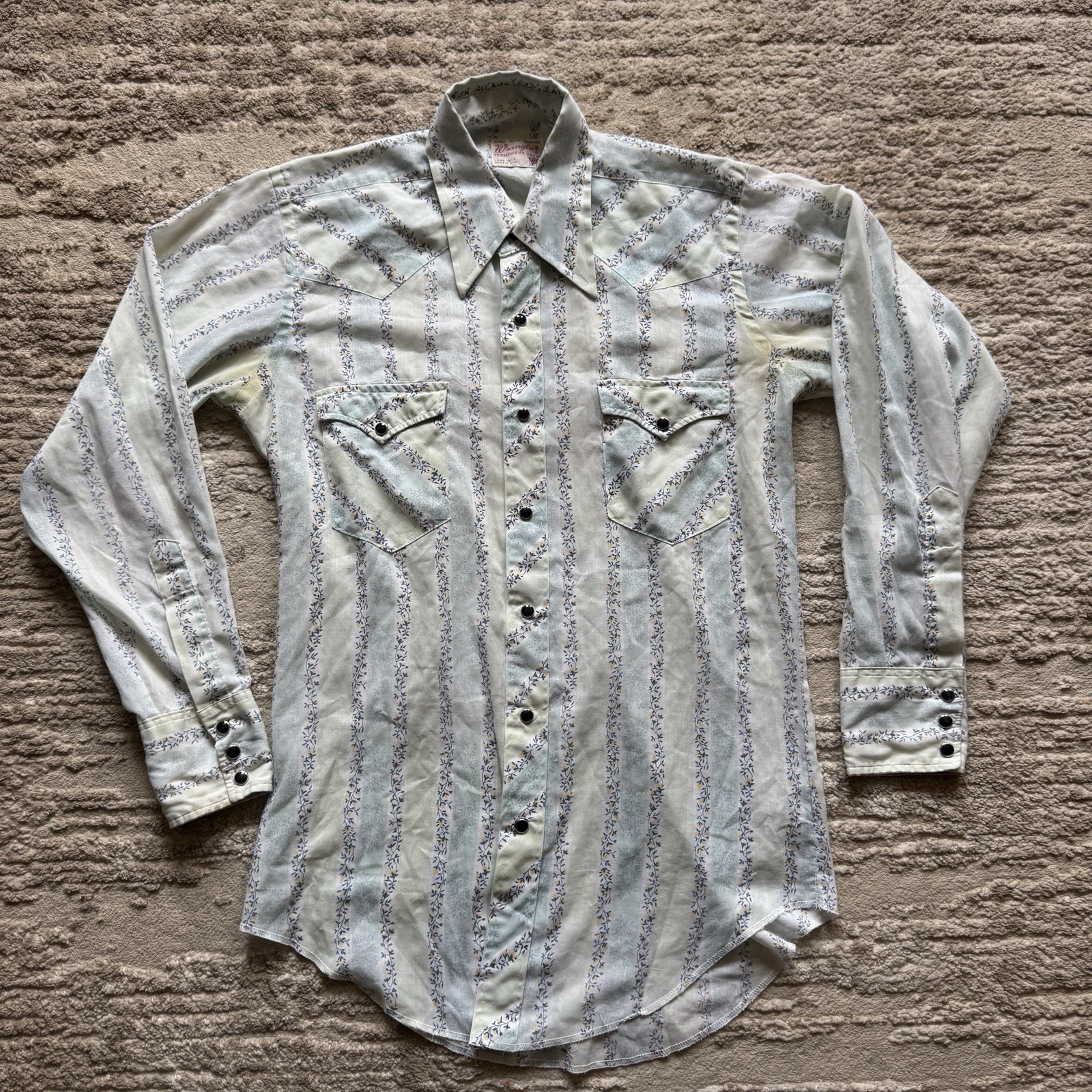 Vintage 1970s Wrangler Floral Designed Western Pearl Snap Shirt Men s Medium USA