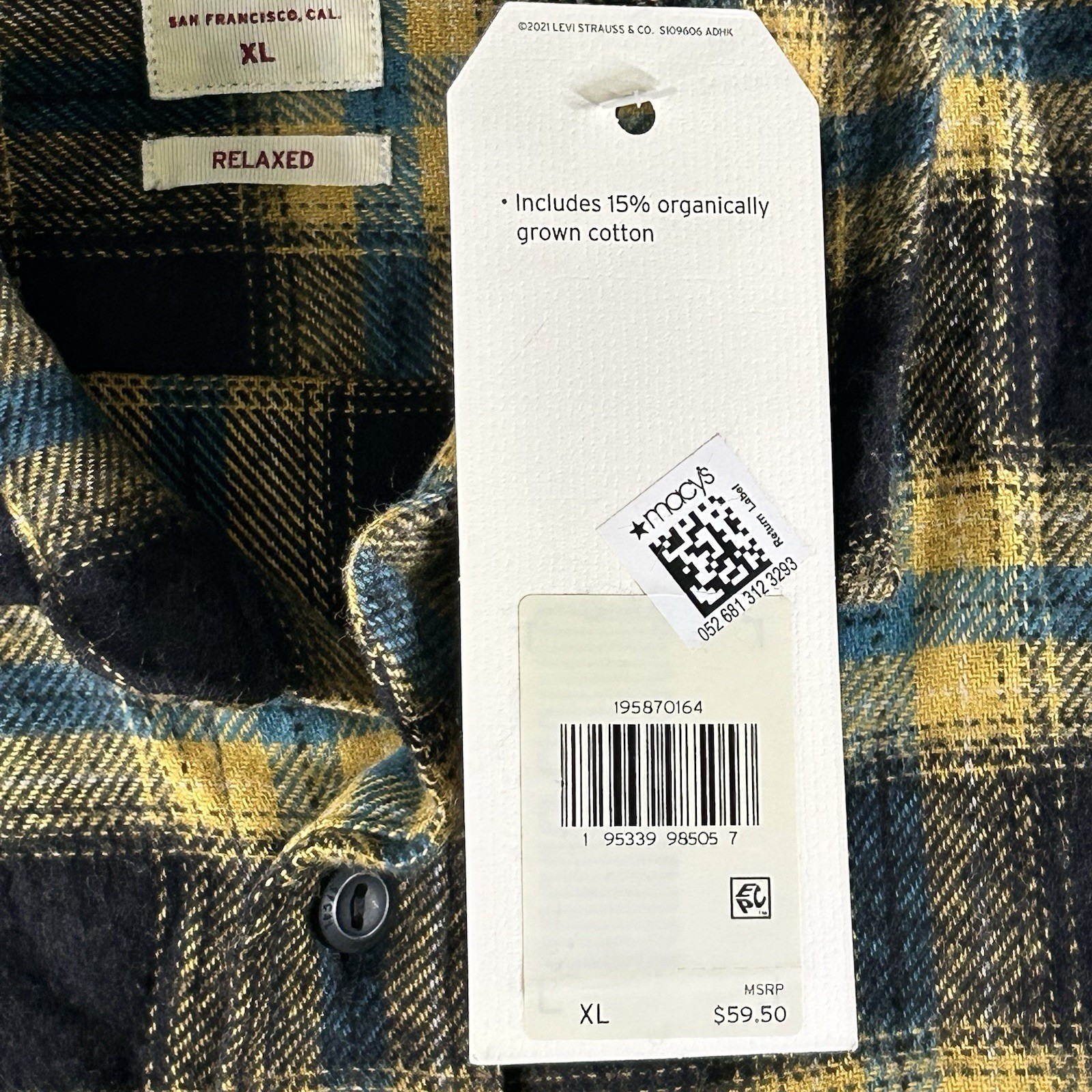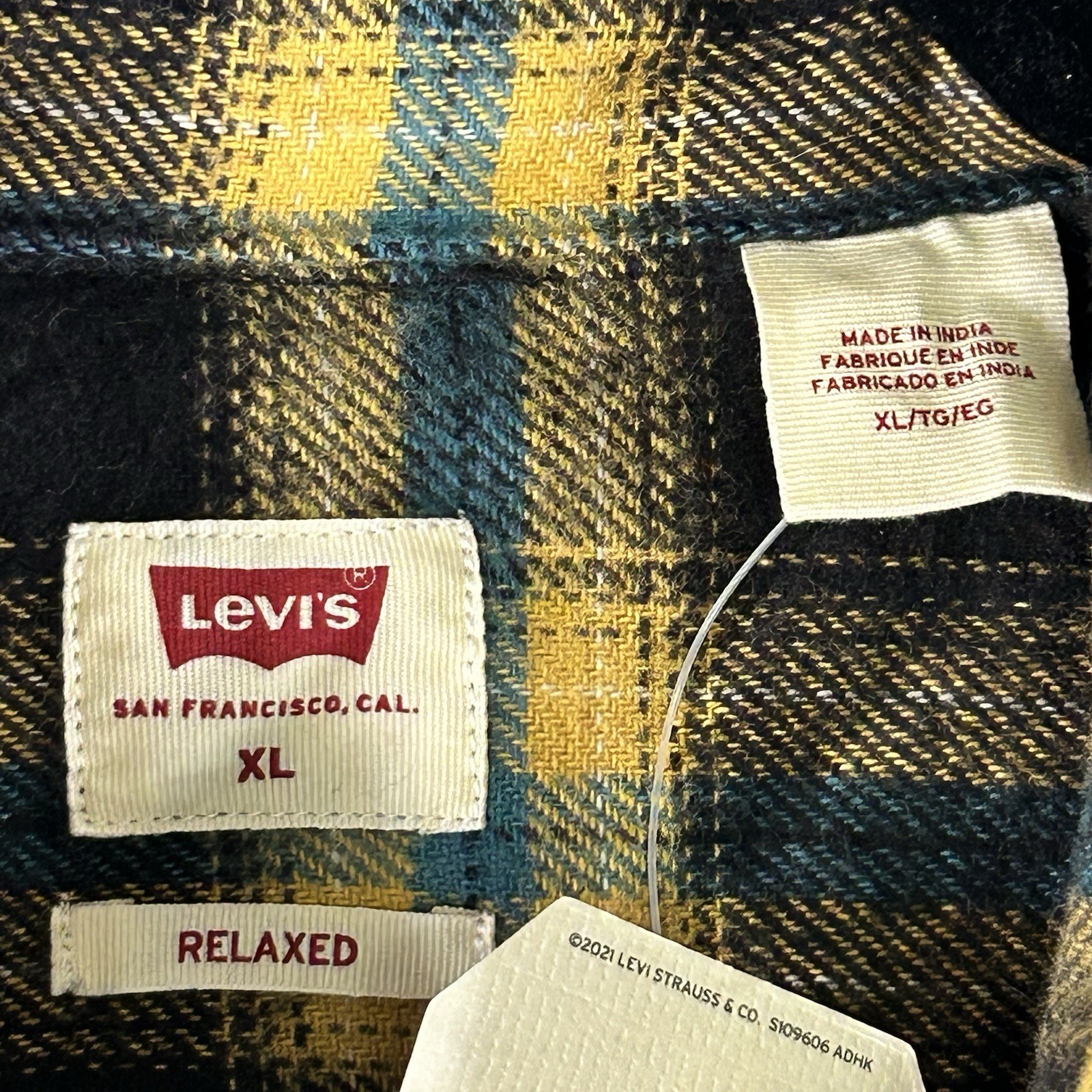Levi s Worker Flannel Shirt Men s XL Relaxed Fit Plaid Yellow Blue Black NWT