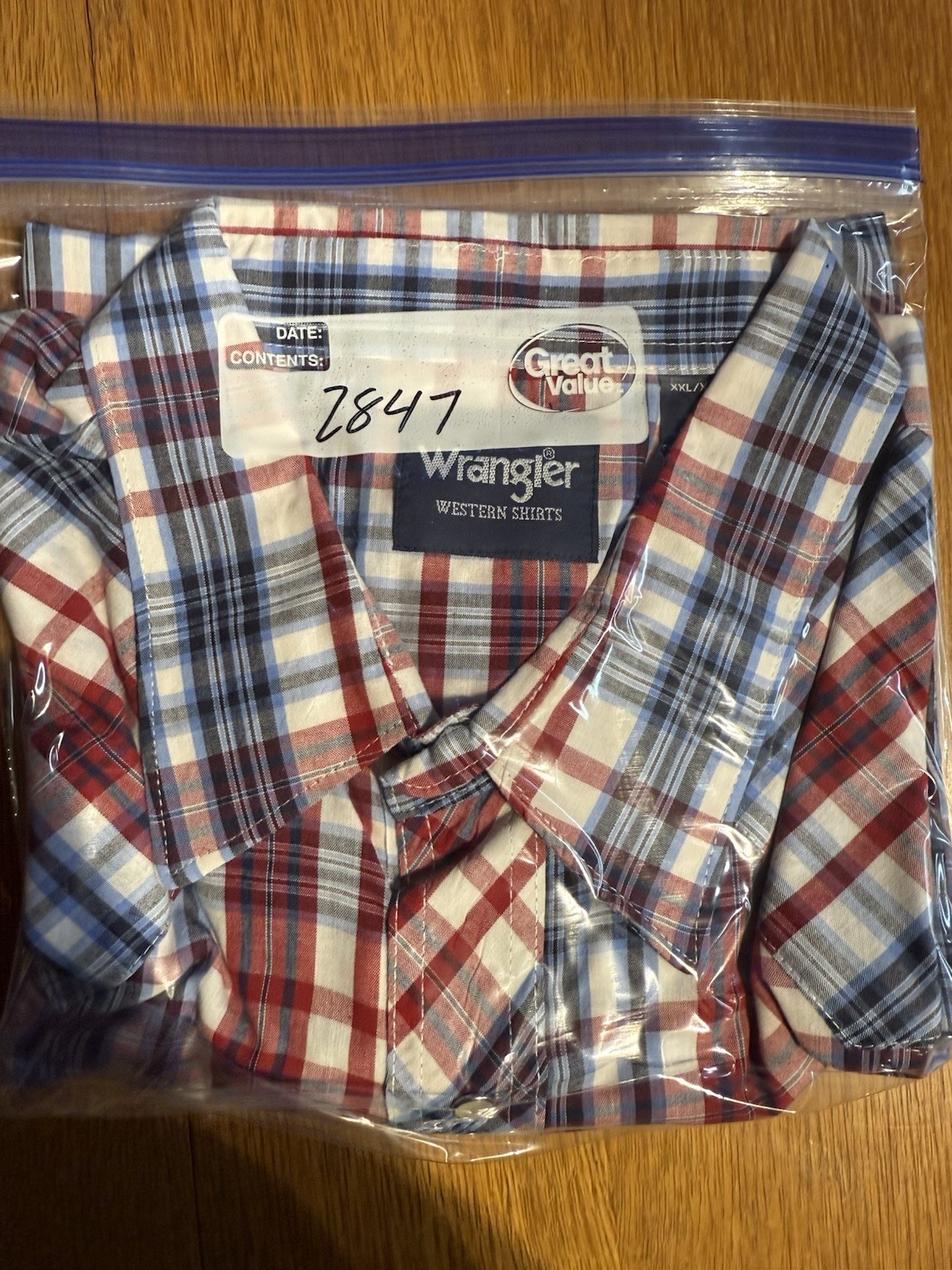 Wrangler Western Snap Shirt Men XXL Red Blue Plaid Pearl Snaps Short Sleeve