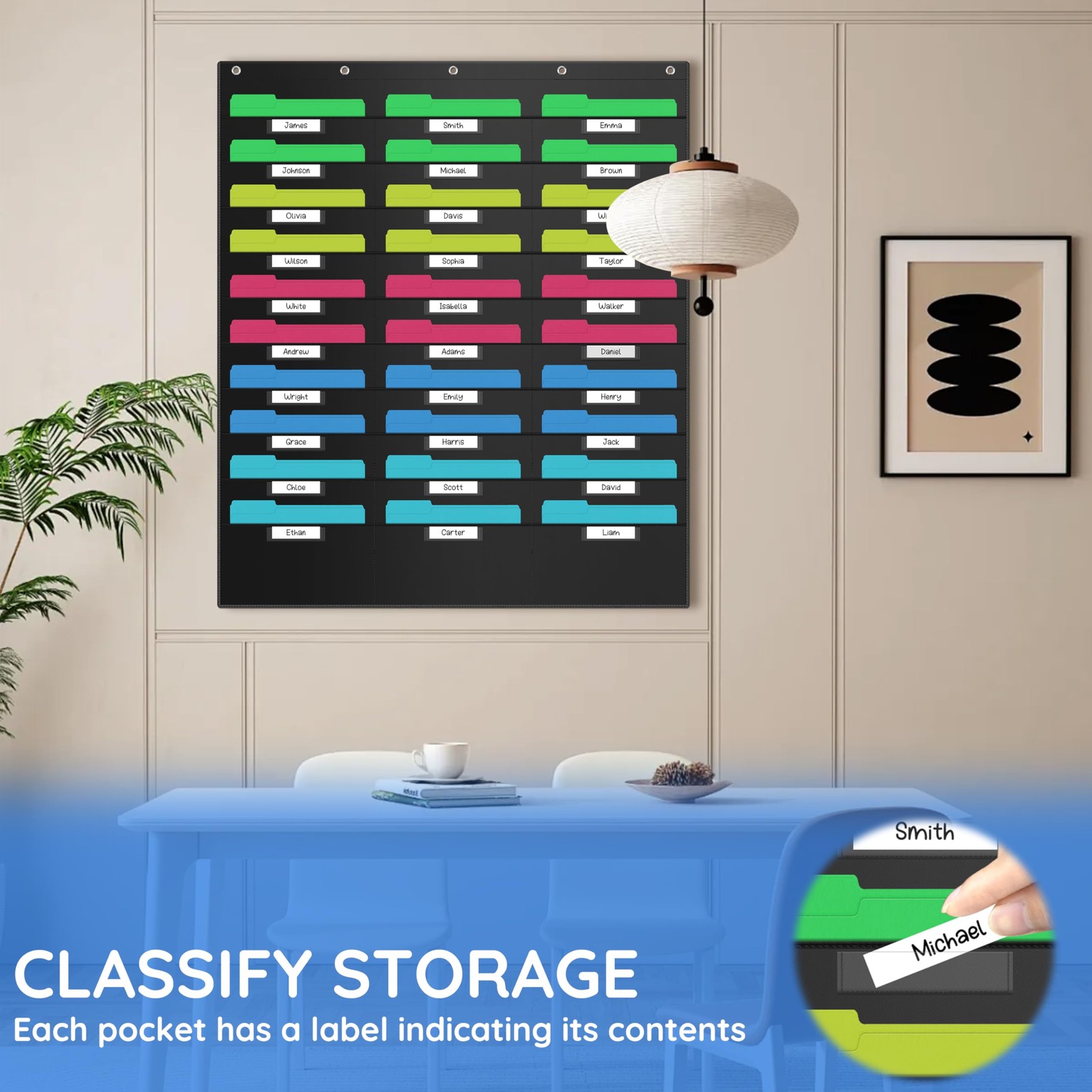 30 Pockets Hanging Wall File Organizer Heavy Duty Holder A4 Paper 5 Hangers
