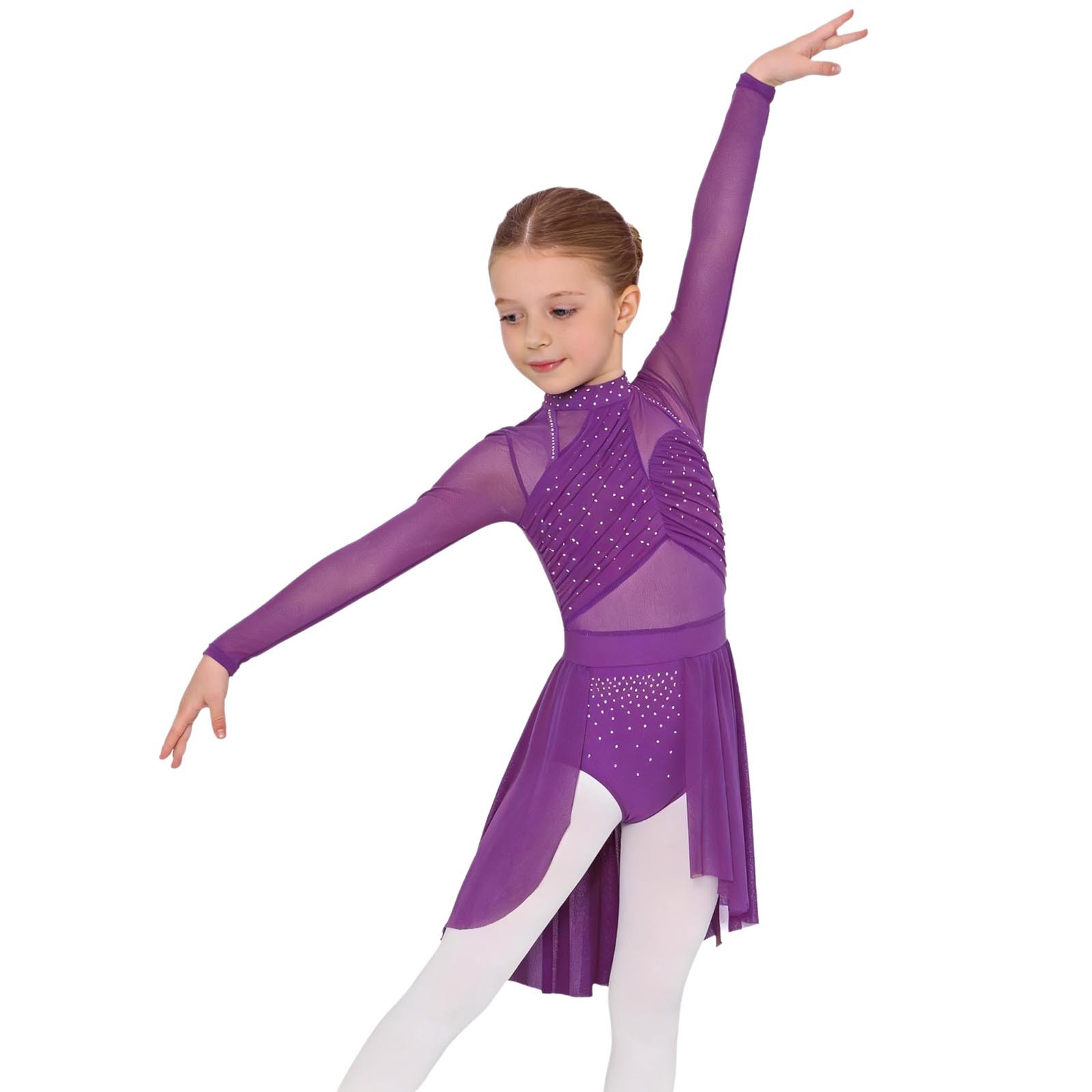 Girls Romper Competition Figure Skating Dress Talent Show Lyrical Dance Kids