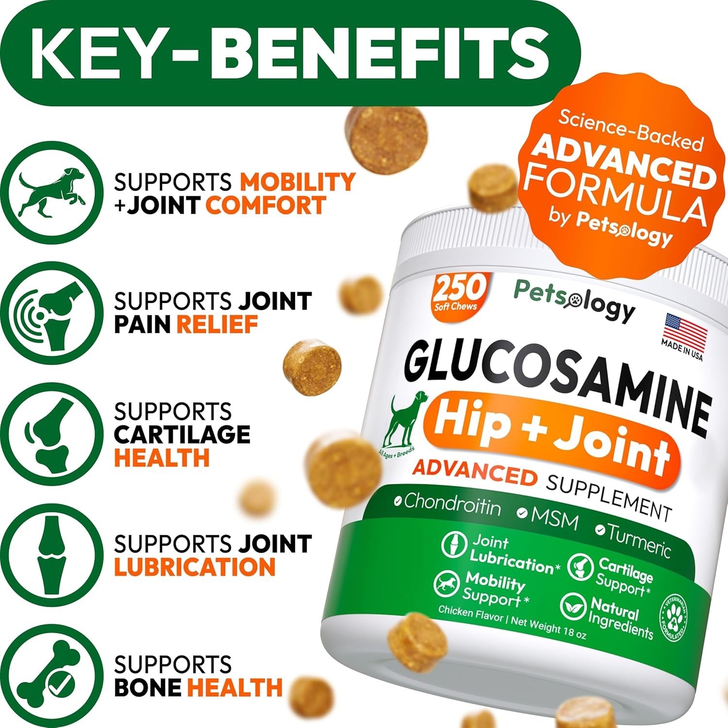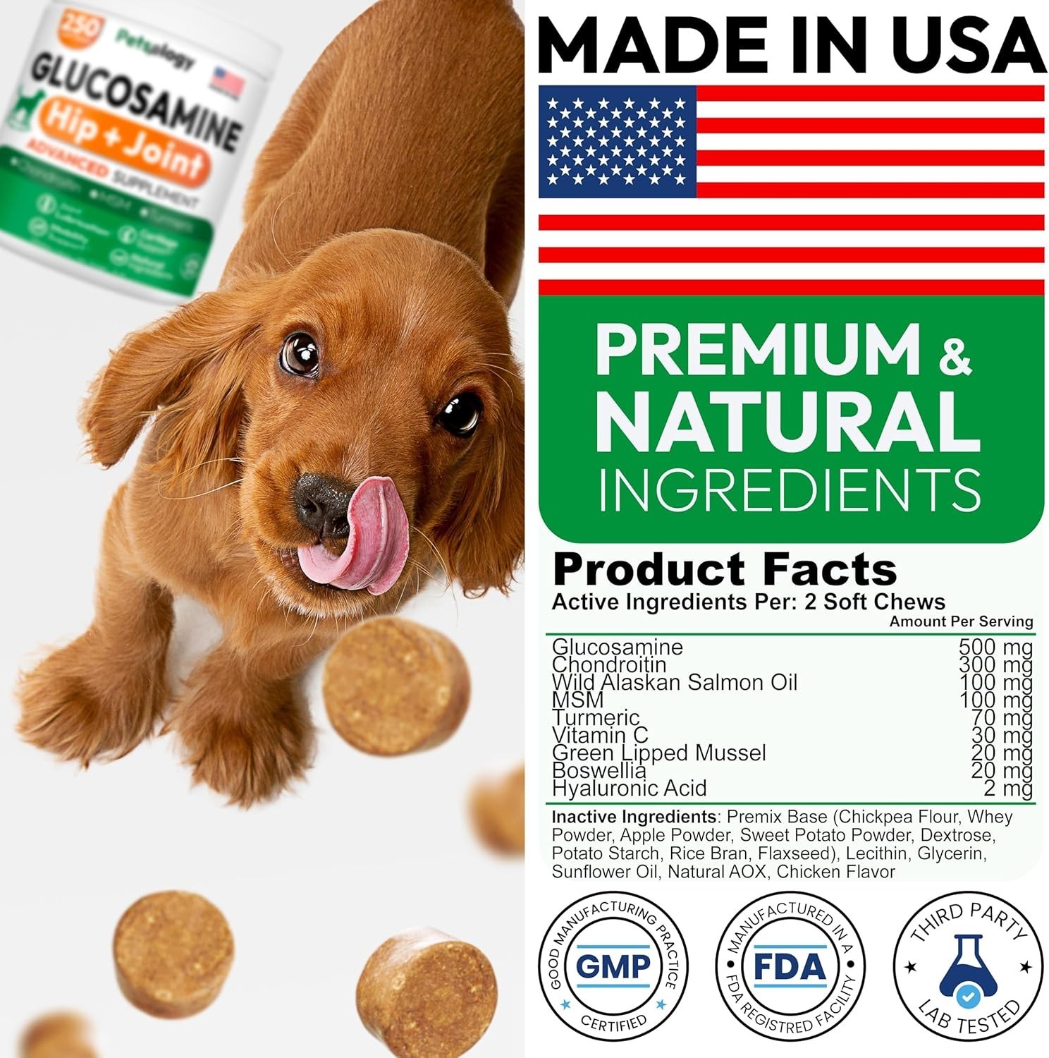Glucosamine for Dogs - 250 Chews with Chondroitin - Hip and Joint. 06/2027