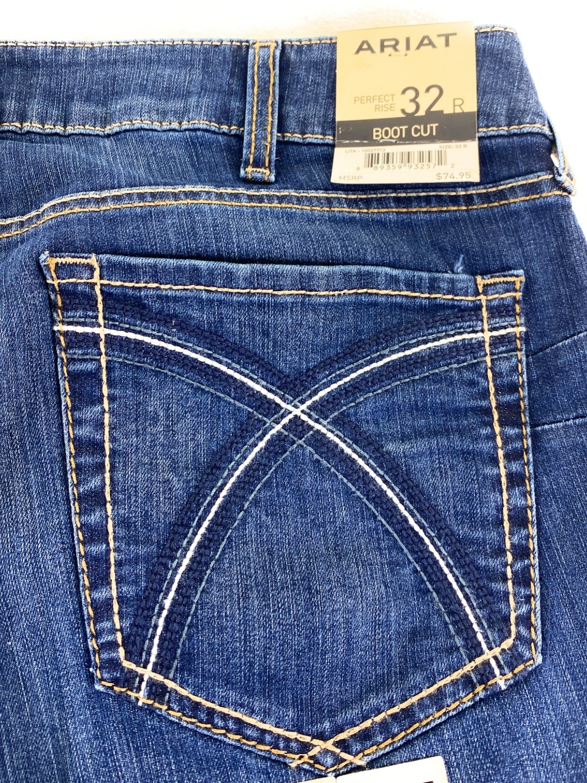 NWT Ariat Women's Perfect Rise Bootcut Stretch Distressed Western Blue Jeans 32R