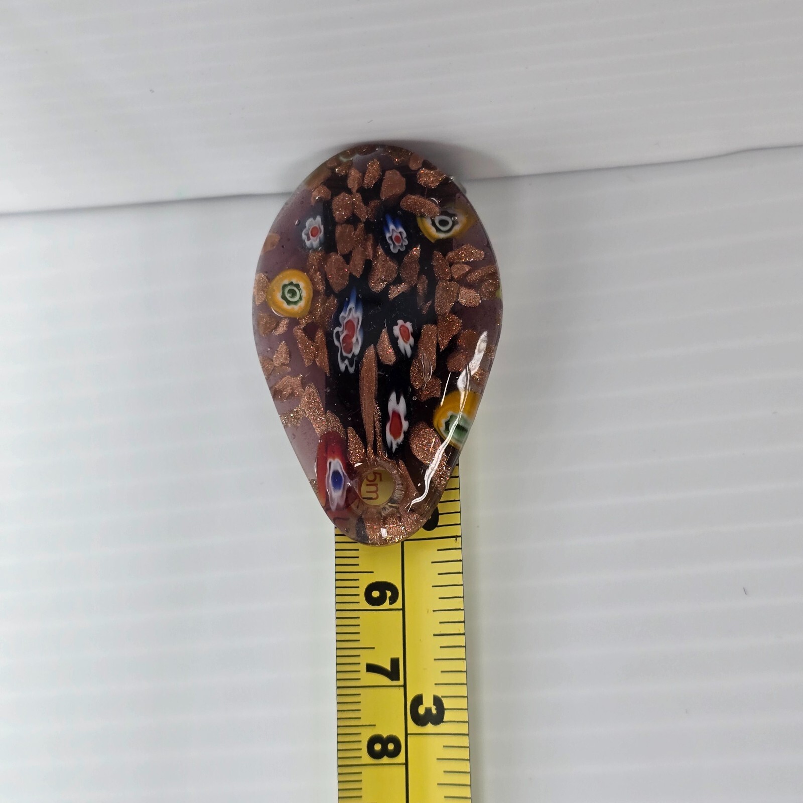 как выглядит LOT OF 2 Glass Donut and Teardrop Pendants Light Blue Floral Brown Colors 2 Inch фото