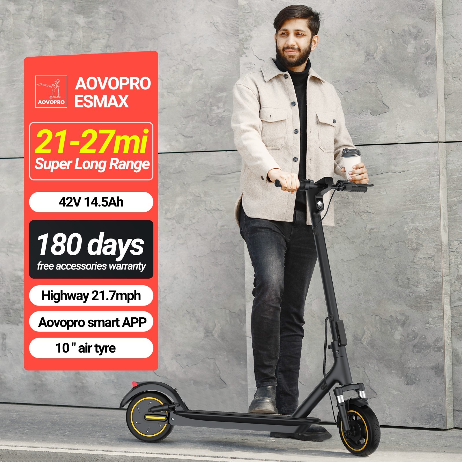AOVOPRO Electric Scooter with Dual Suspension 350/500/800W 19-40Mile LONG Range