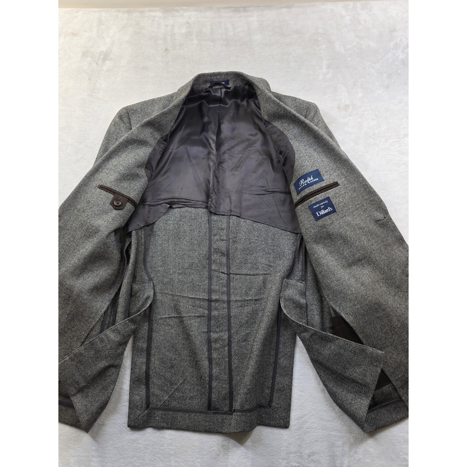 как выглядит Ralph Lauren Sport Coat Mens 40R Gray Taupe 100 Lambswool Half Lined Blazer фото