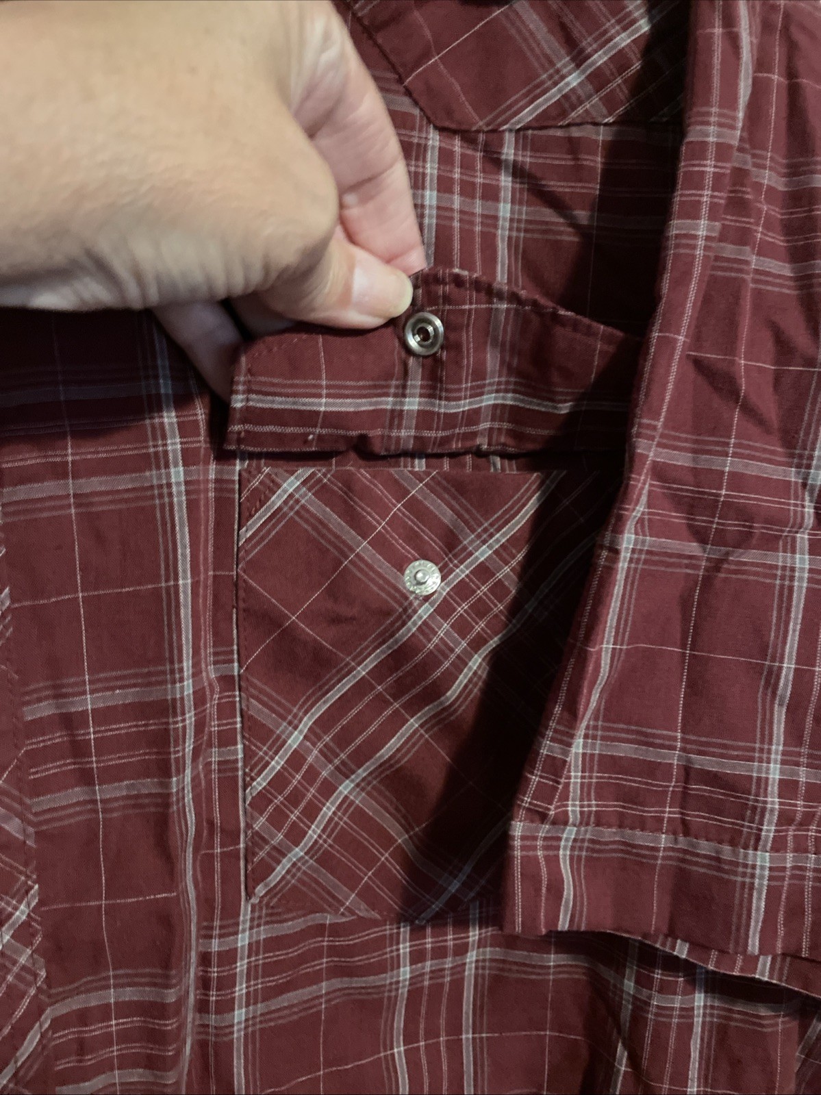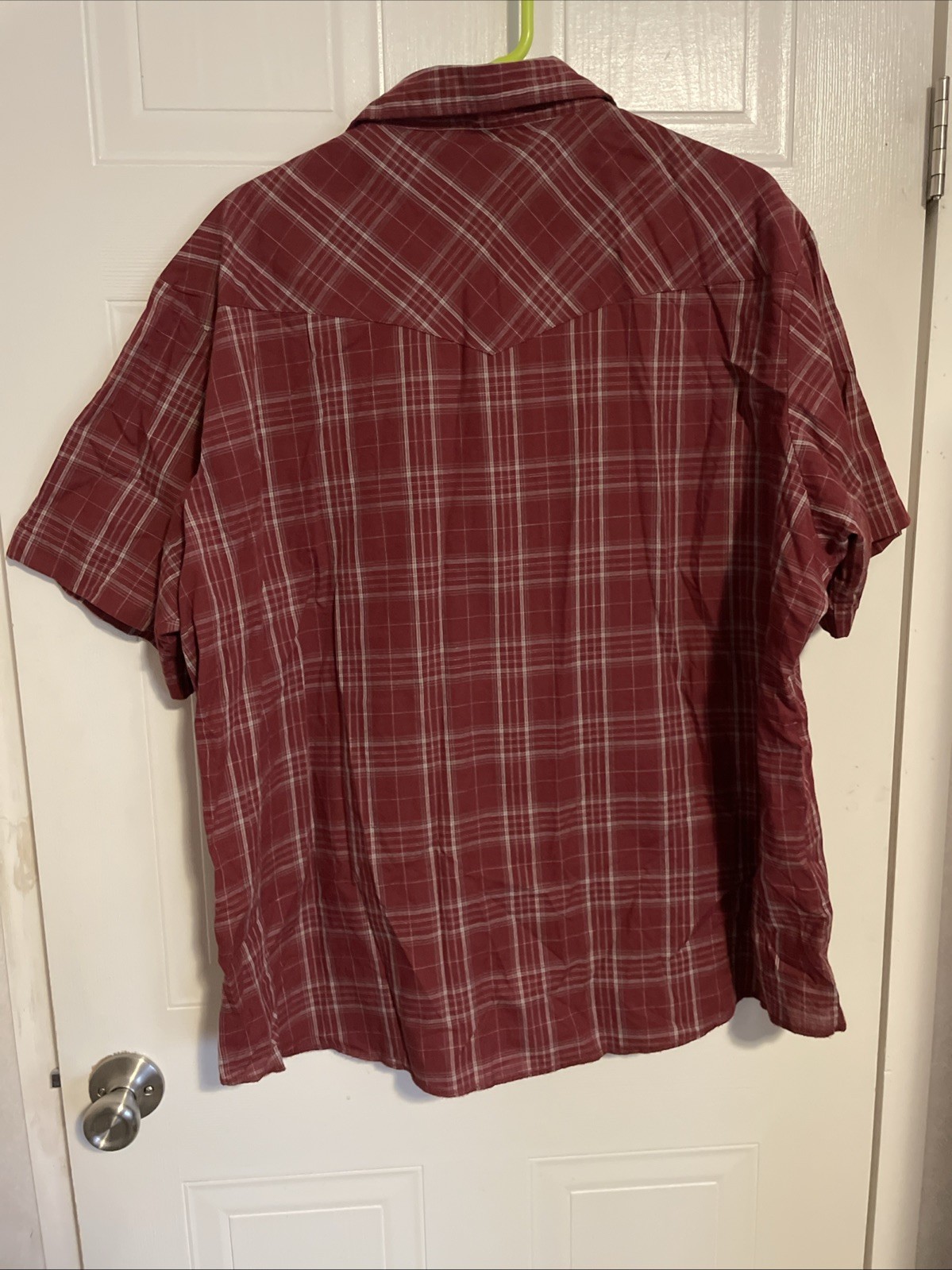 Wrangler Western Shirt Mens Size XXL Pearl Snap Maroon Red Plaid Short Sleeved