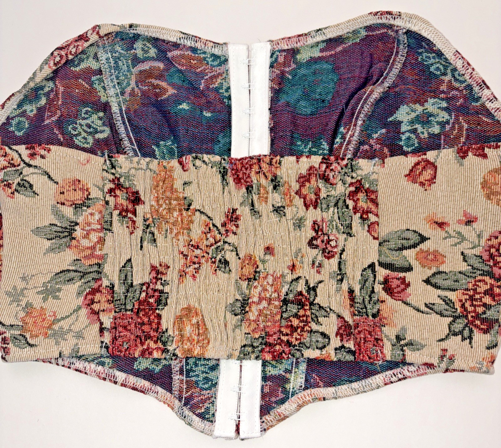 Floral Tapestry Corset Top Women's L Smocked Back Hook Eye Close Renaissance