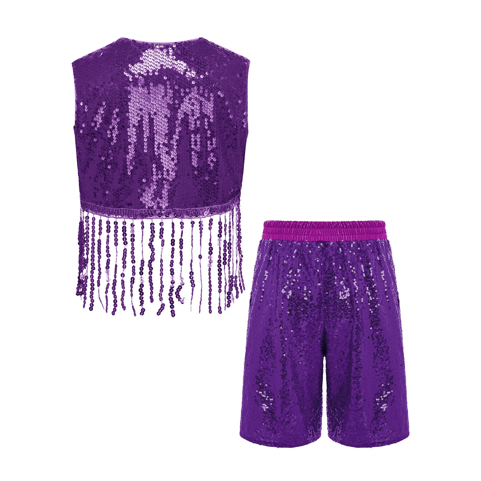 Kids Sequin Vest Samba Shorts Set Dancewear Jazz Dance Crop Top Outfits Salsa