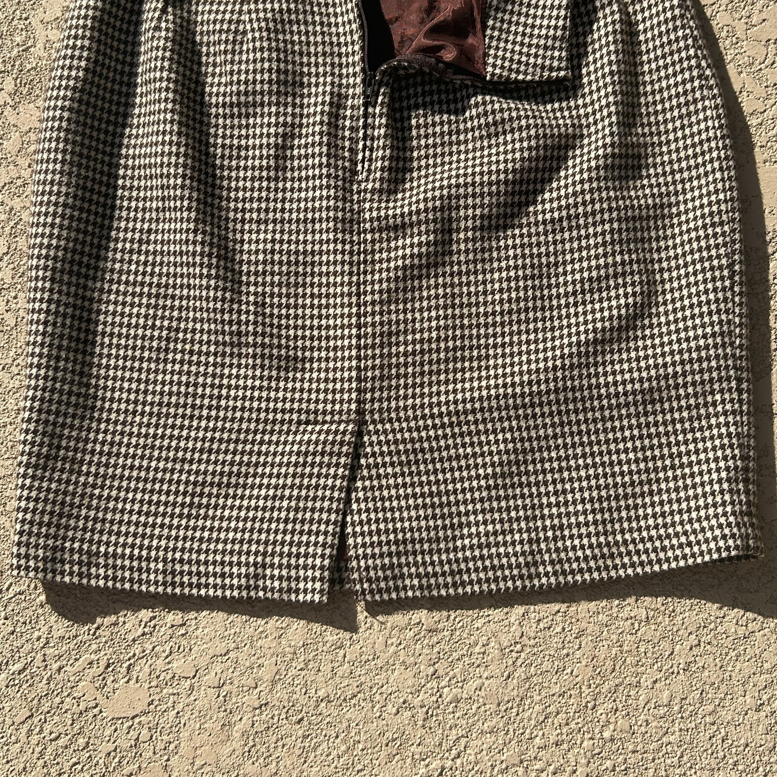 Vintage Wool Skirt Maggie Lawrence Size 10 Houndstooth Plaid Midi Lined Pencil