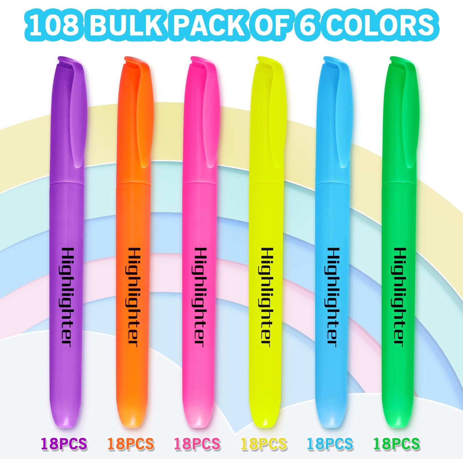 108 Highlighters Bulk, Highlighters Assorted Colors for Adult , Chisel Tip Dr...