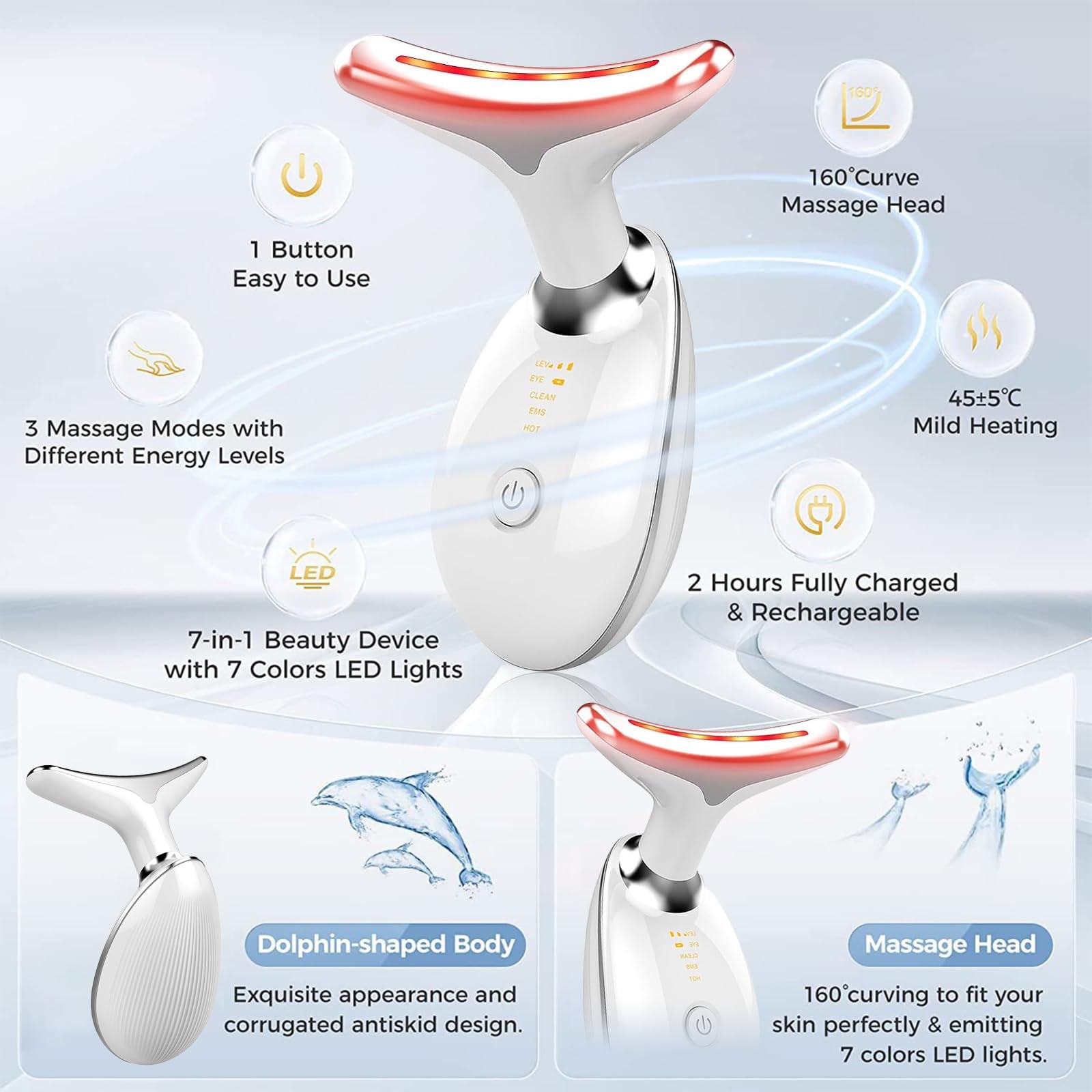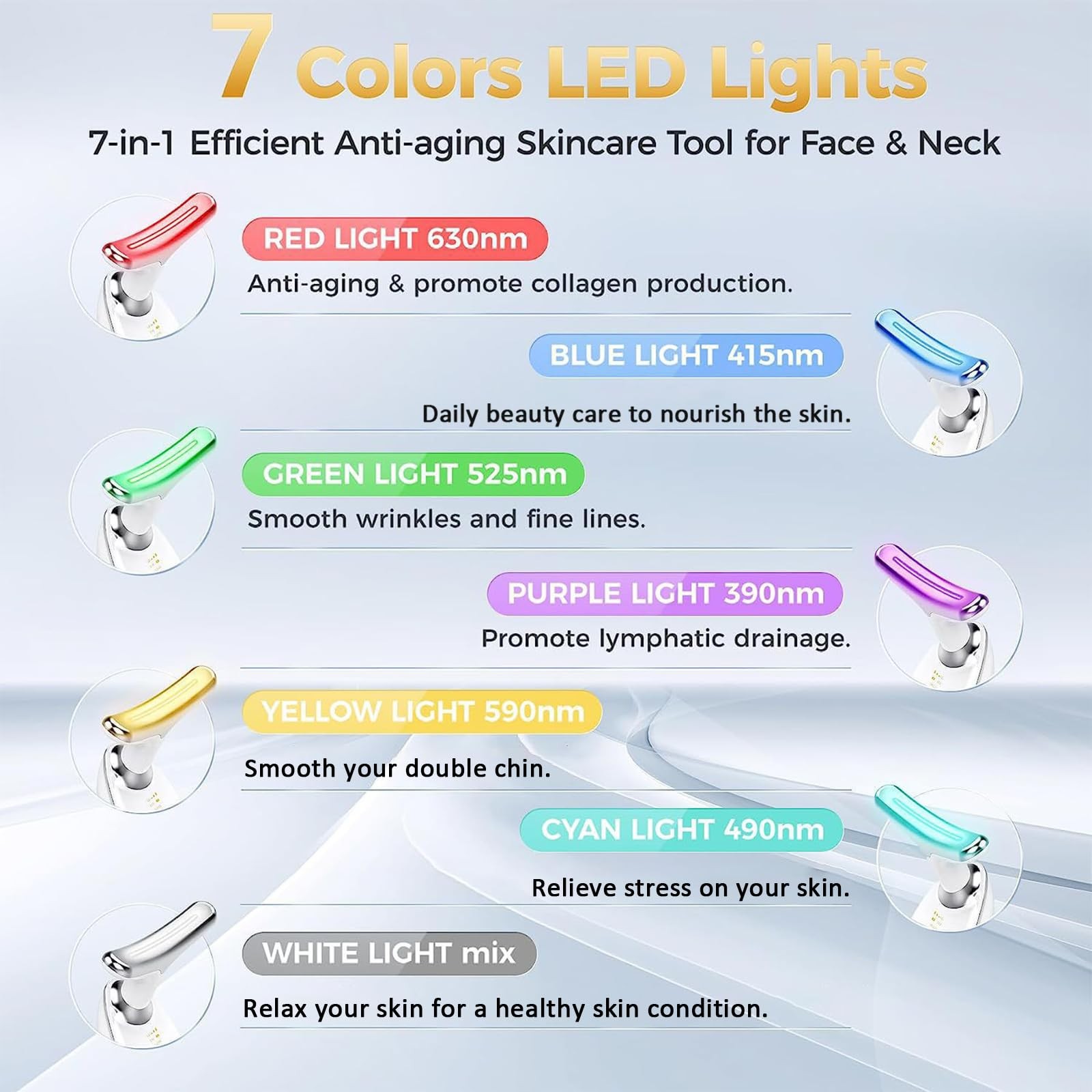 Device 7-in-1 Red Light Therapy for Face and Neck - 7 Colors, Smart Vibrati...
