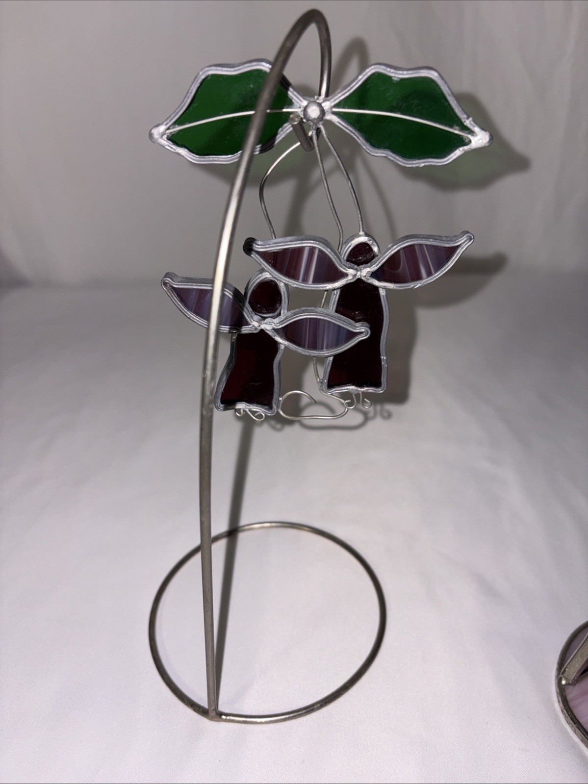 Stained Glass Sun Catcher Angels Mother Baby Purple Pink Metal