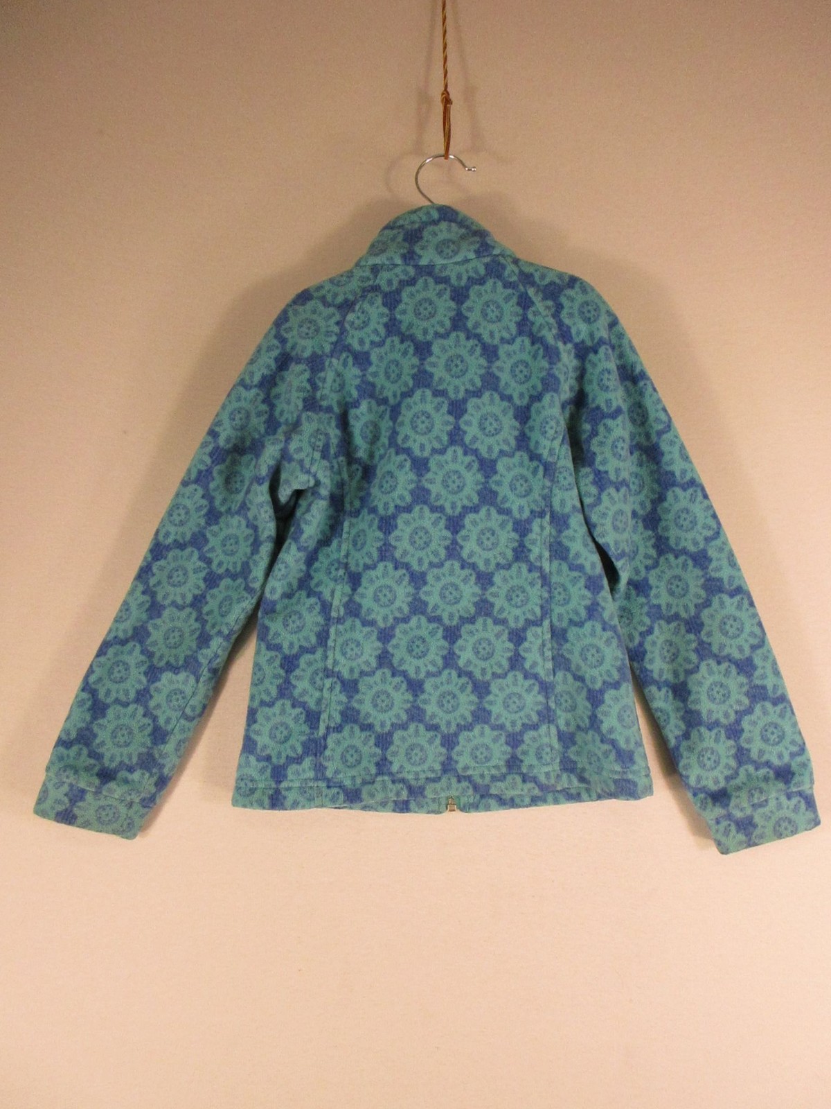 как выглядит Columbia Fleece Jacket Girls S 7/8 Blue Teal Floral Full Zip Pockets Lightweight фото