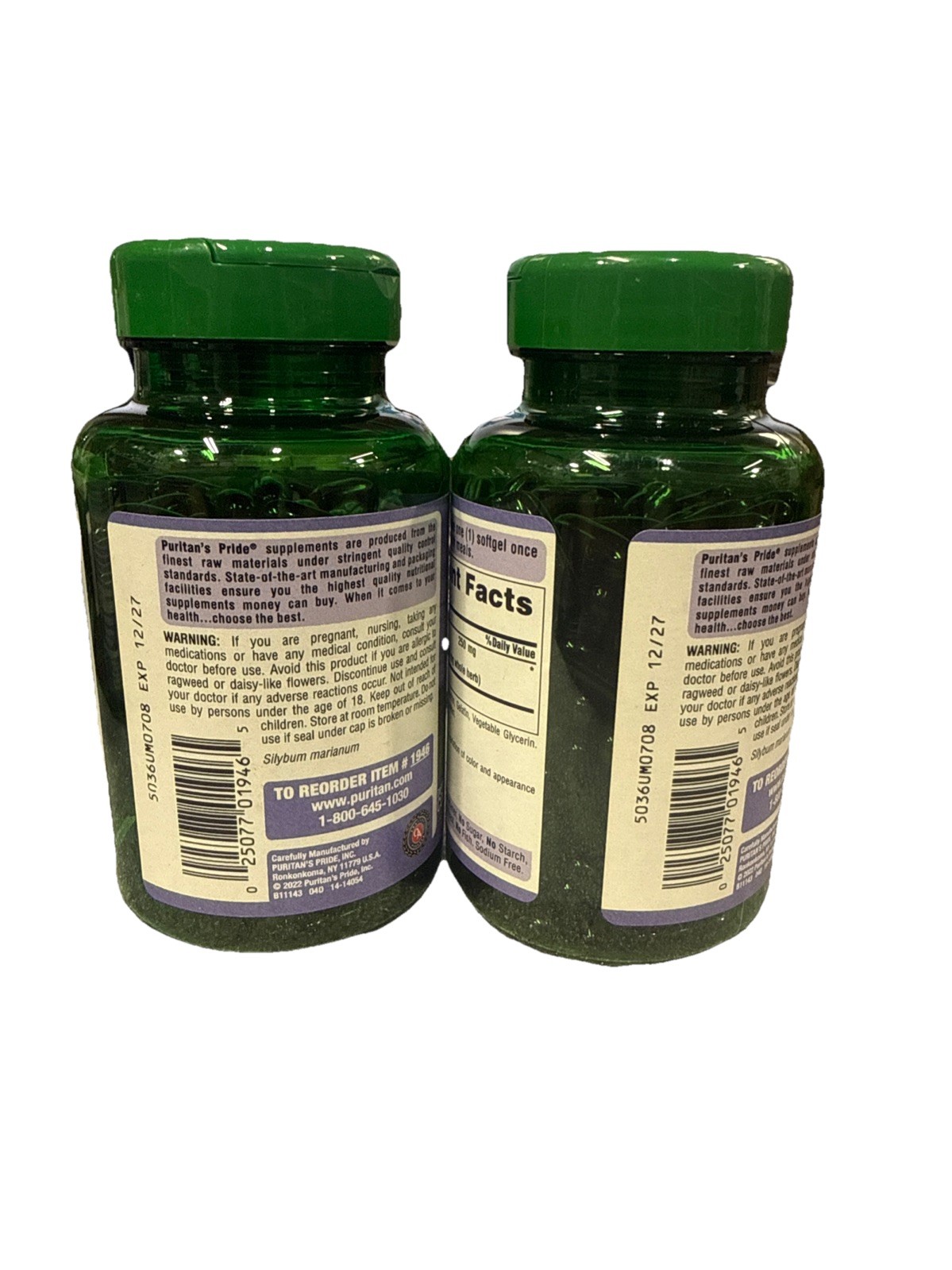 Puritan's Pride Milk Thistle Extract 1000 Mg Softgels - 180. EXP 09/2027
