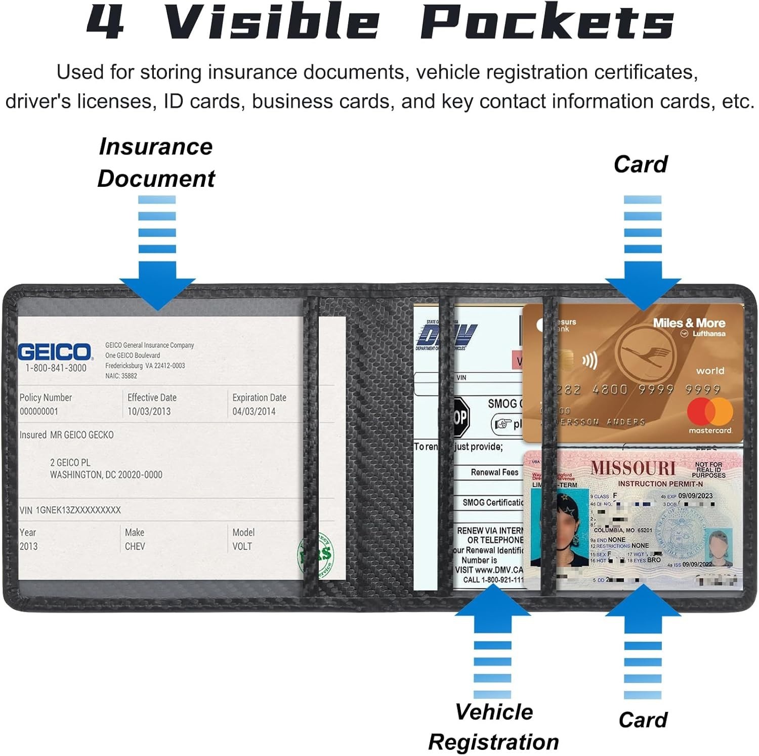 Car Registration and Insurance Holder, Premium Pu Leather Vehicle Glove Box Orga