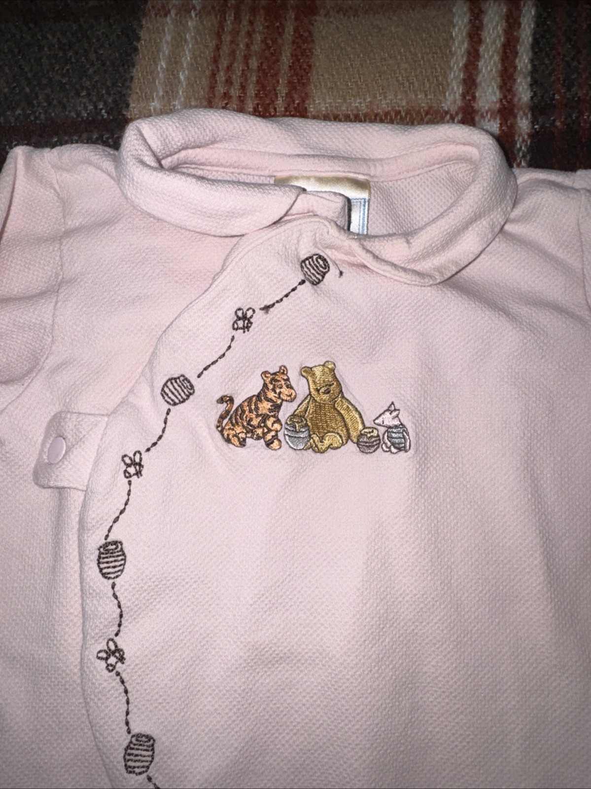 как выглядит Vintage Classic Pooh Girls Girly Pale Pink Sleeper Size6 Months Piglet Tigger фото