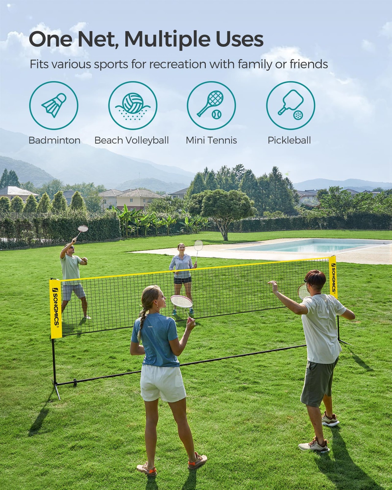 Songmics 16.5ft Badminton Volleyball Pickleball Net