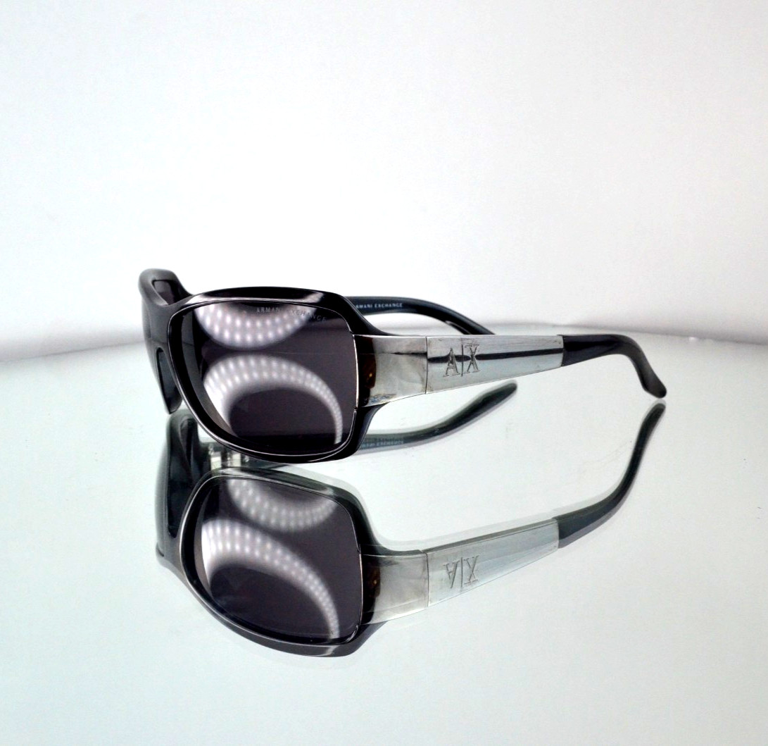 как выглядит RARE Armani Exchange Wrap Sunglasses Black/Silver Logo Metal Vintage AX079/S фото