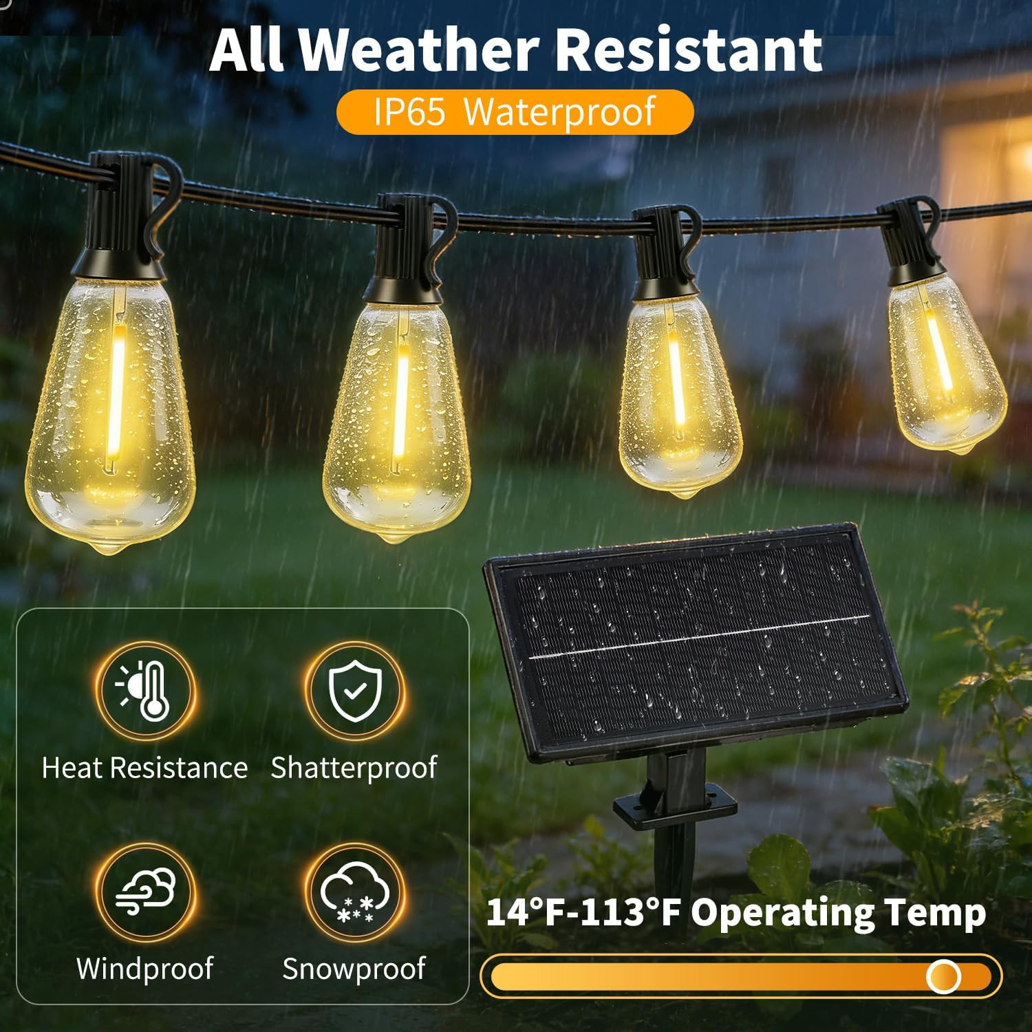 Solar Lights Outdoor Waterproof: ST38 50FT 15M Shatterproof Bulbs Patio Lights -