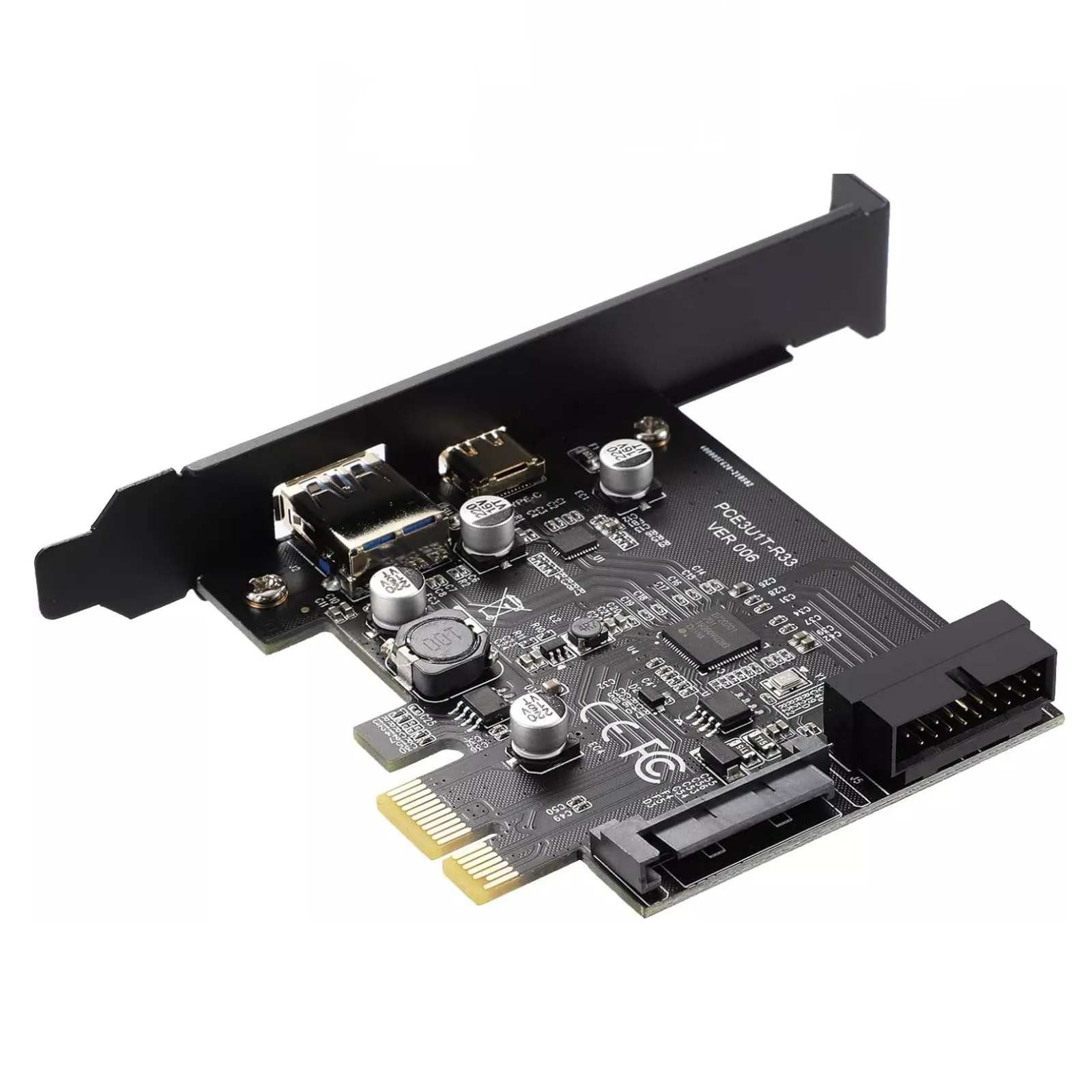 как выглядит PCI-E 1X to USB 3.2 Gen1 5Gbps 2 Ports Type C Type A Expansion Card With 19PIN фото
