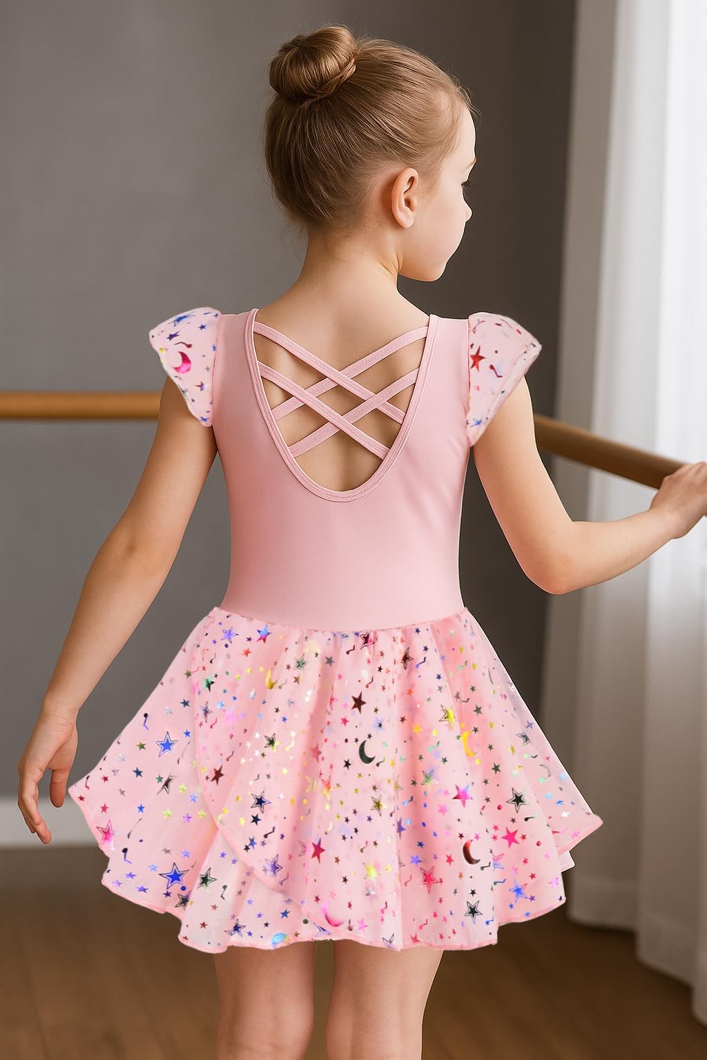 DANSHOW Ballet Leotards for Girls Dance Skirted Leotard 4-5T, Pink Rainbow