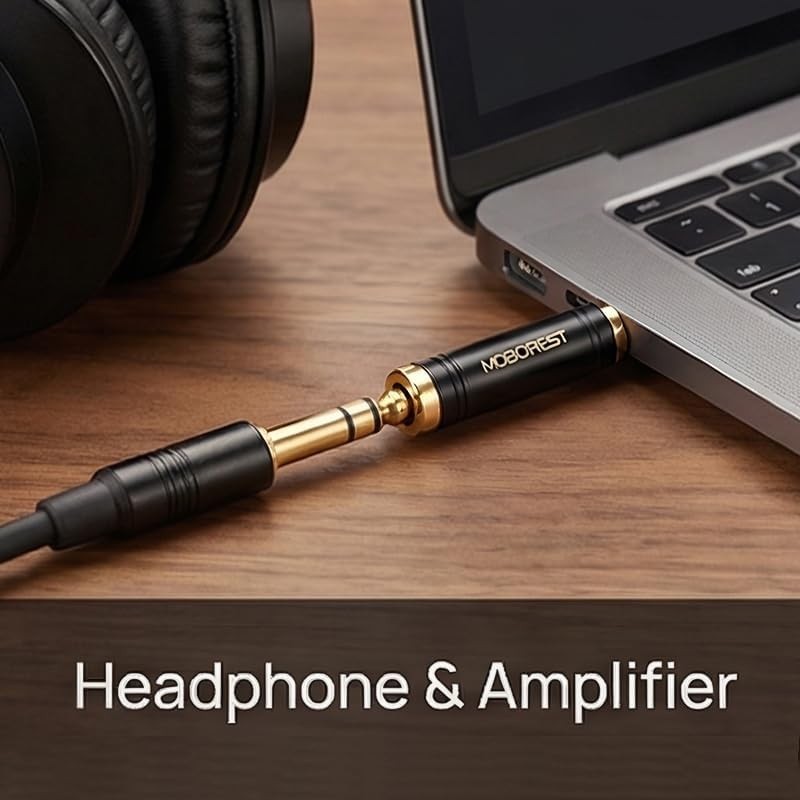 Compact 3.5mm to 1/4'' Stereo Adapter - Snug Fit, Plug and Play Convenience