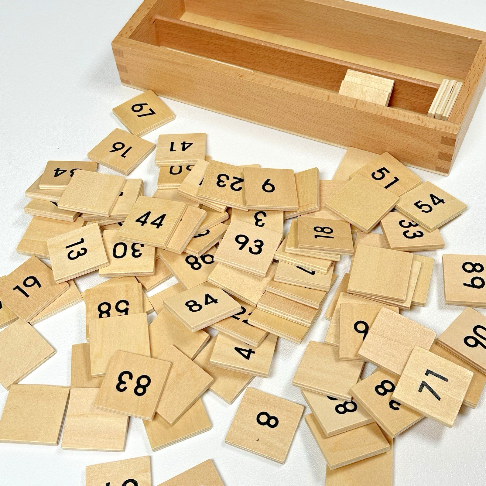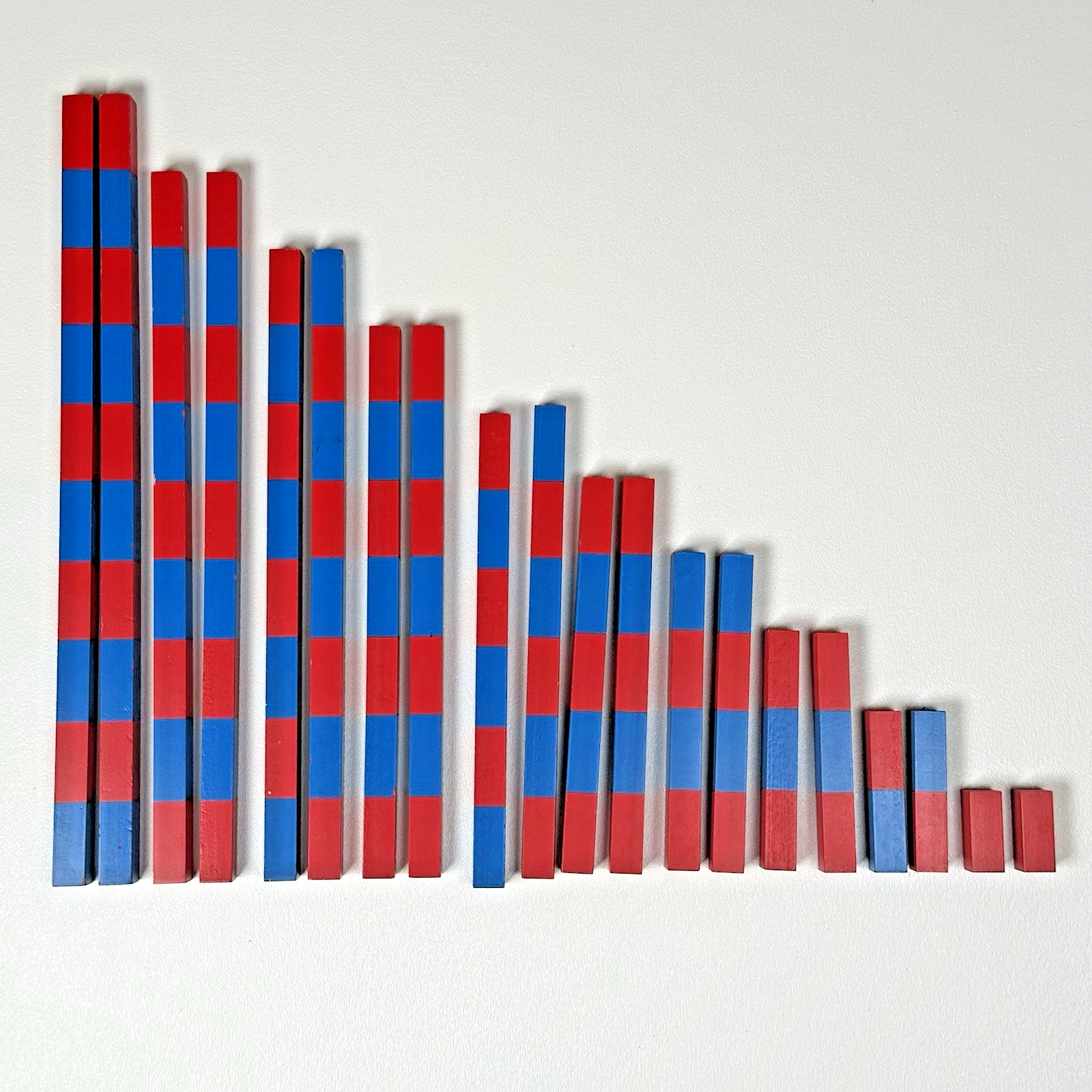 Montessori Style Math Set Wooden Number Tiles Counters Red Blue Rods