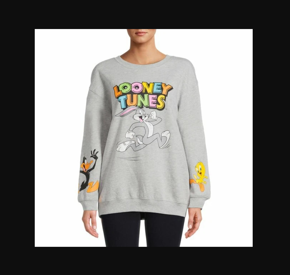 Women's Looney Tunes Juniors Chase Graphic Sweatshirt Pullover XLARGE Gray NEW