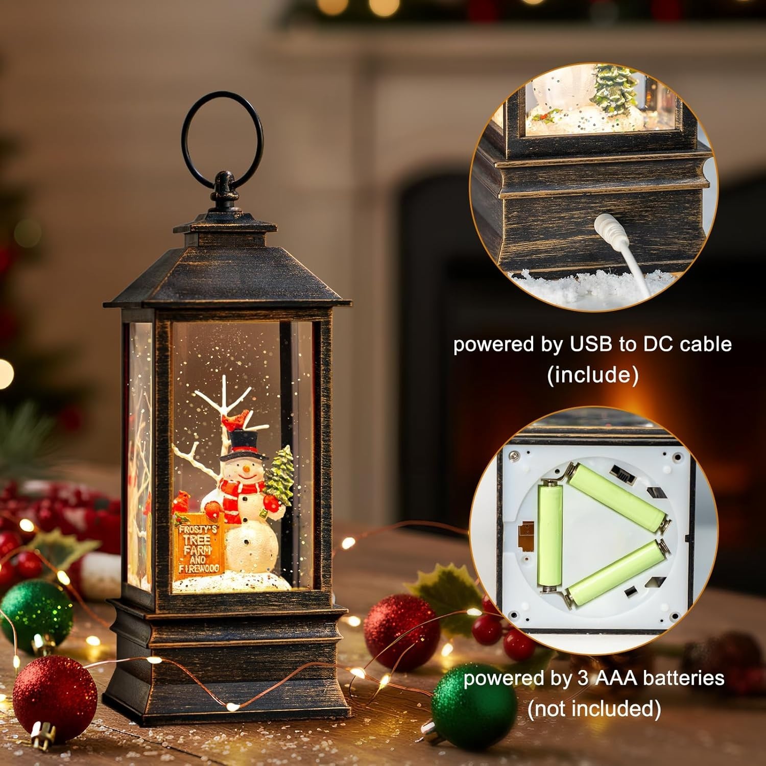 Christmas Snow Globe Lantern with Musical Snowman and Swirling Glitter Scene