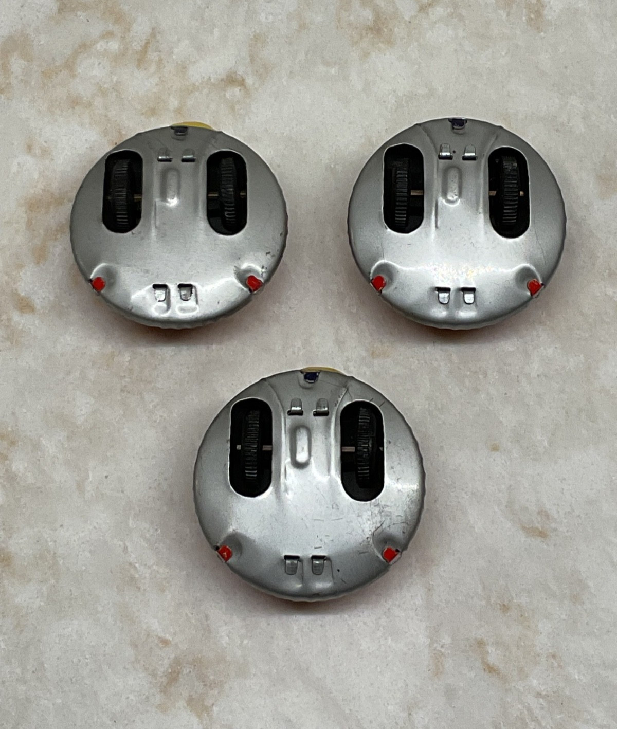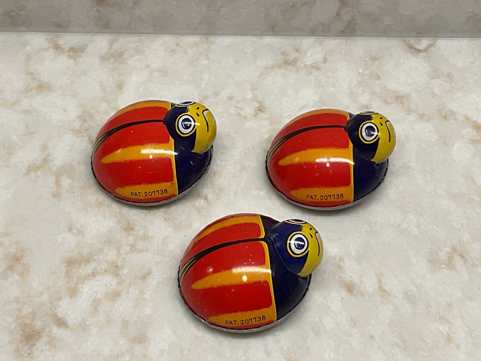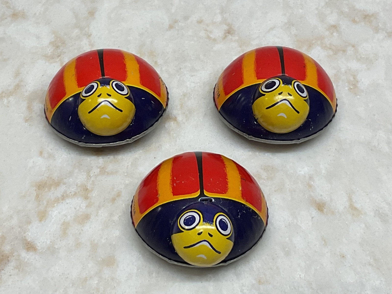 как выглядит KOYO TIN METAL LITHO LADYBUG 2" ROLLING FRICTION TOY LOT OF 3 VINTAGE JAPAN фото