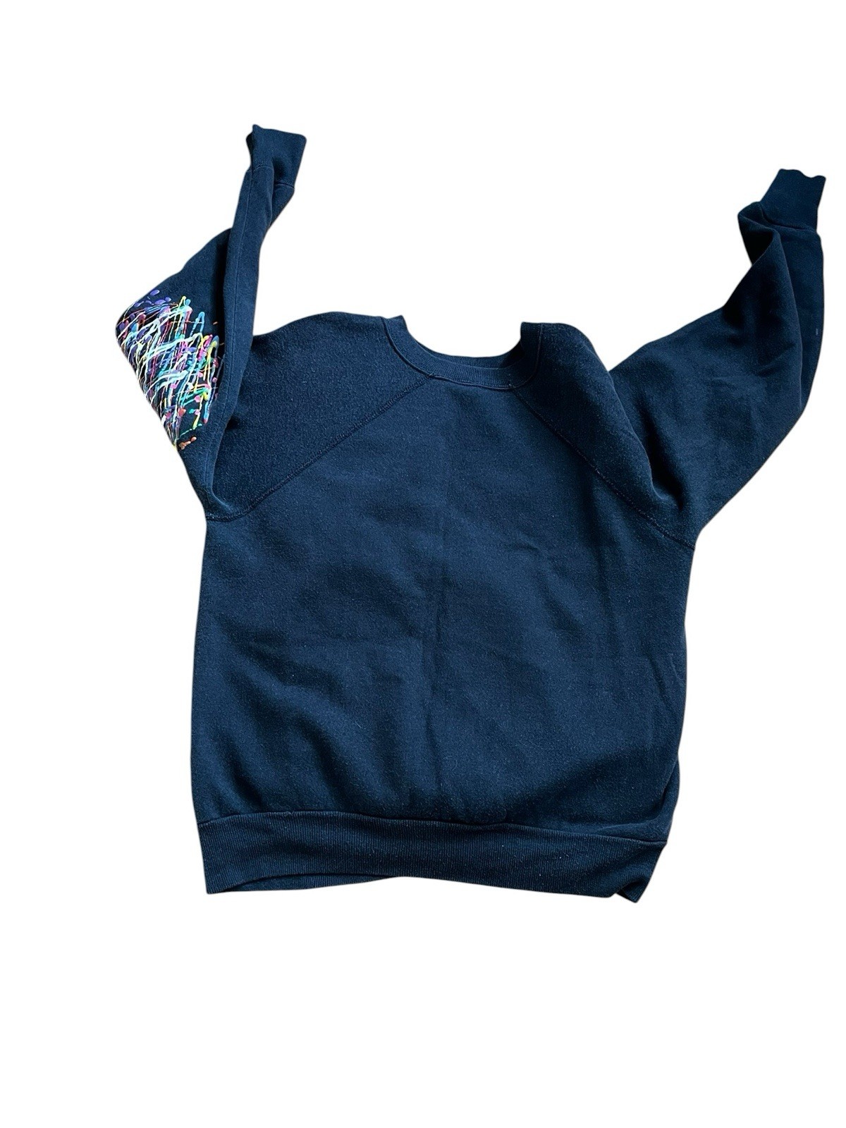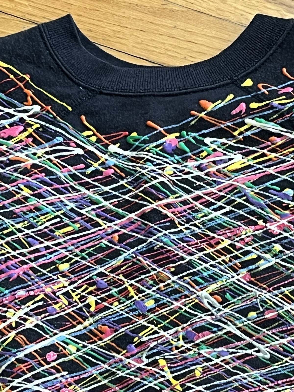 Vintage Handcrafted Splattered String Paint Art To Wear Black Sweatshirt M USA