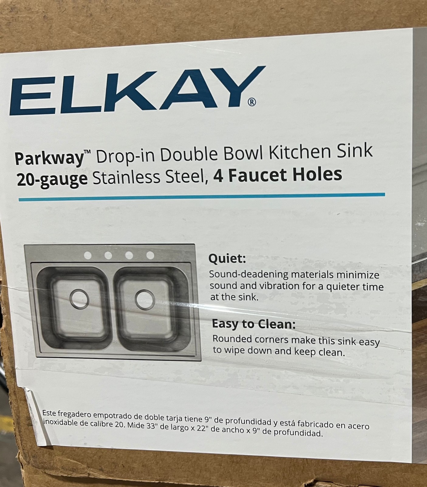 Elkay Parkway 33 in. Drop-in Double Bowl 20G Stainless Steel Kitchen Sink Only