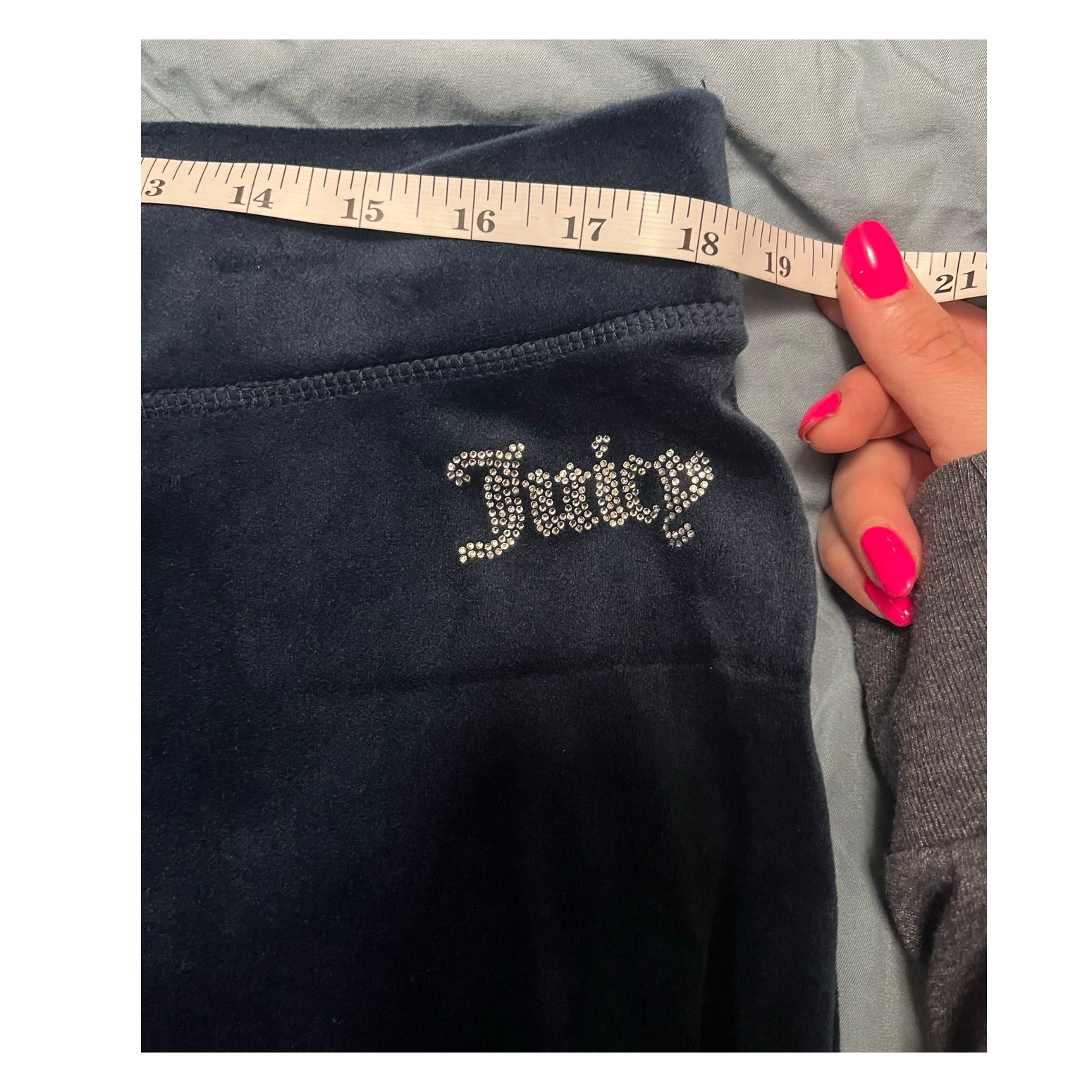 как выглядит Juicy Couture Velour Track Pants XXL Navy Y2K Bling Logo Wide Leg фото
