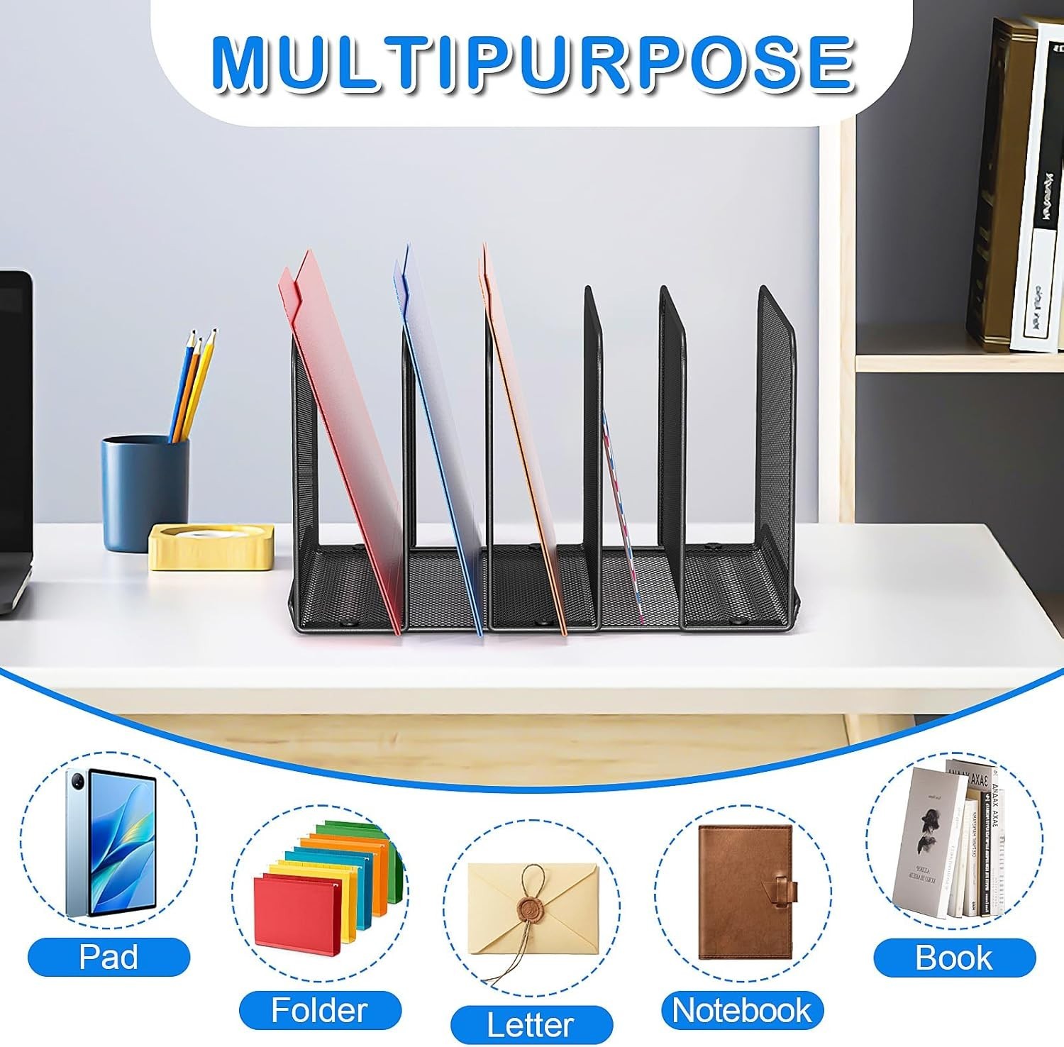 5 Sections Desk File Holder/Rack/Sorter,Mesh File Organizer,File Folder Organize