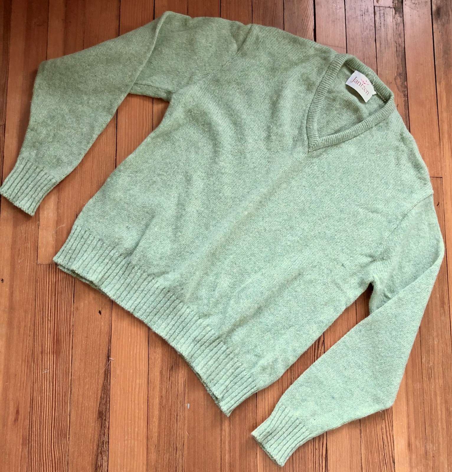 VTG 60s JANTZEN SWIMMER LABEL USA WOOL SWEATER V-NECK MEN'S M MINT GREEN EUC