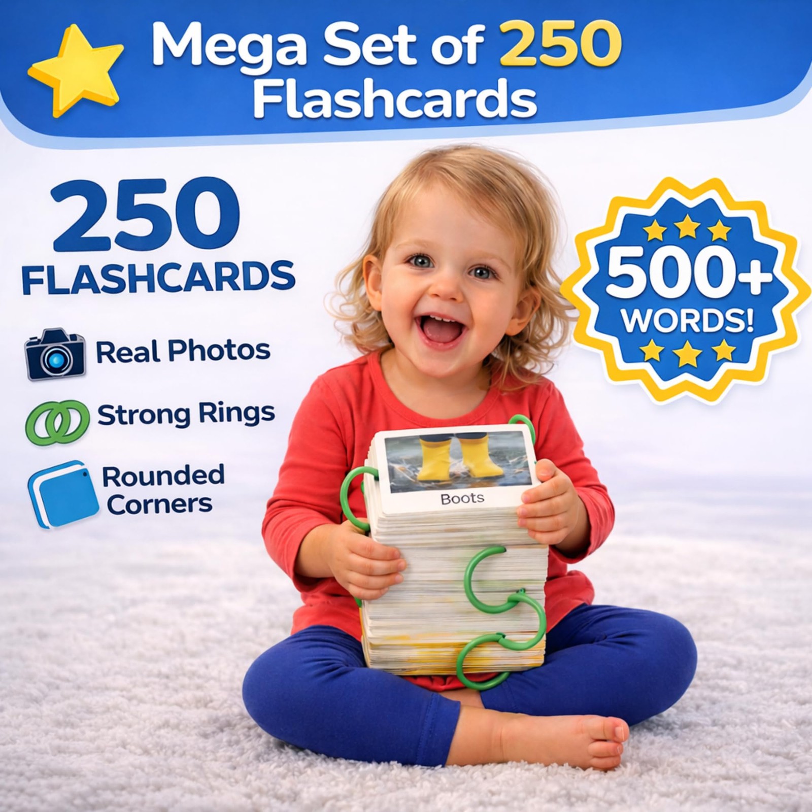 Flash Cards for Toddlers 1 3 with Rings,250 Double-Sided Cards,500 Words 1 Ye...