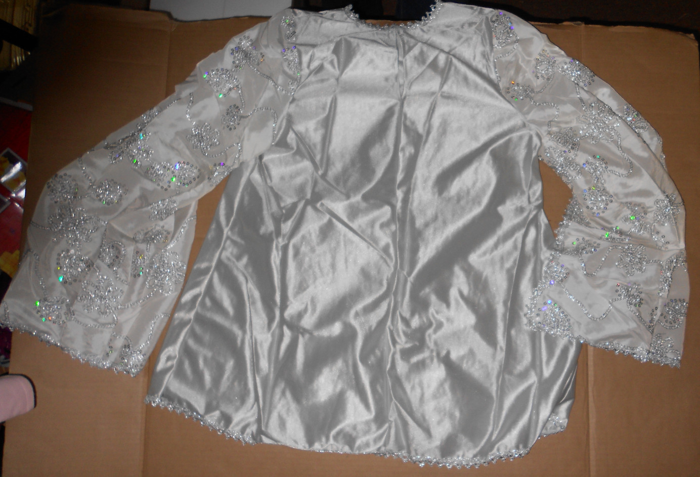 как выглядит Praisewear Tunic Liturgical Church Dance White Silver cross Top Child Sequins фото