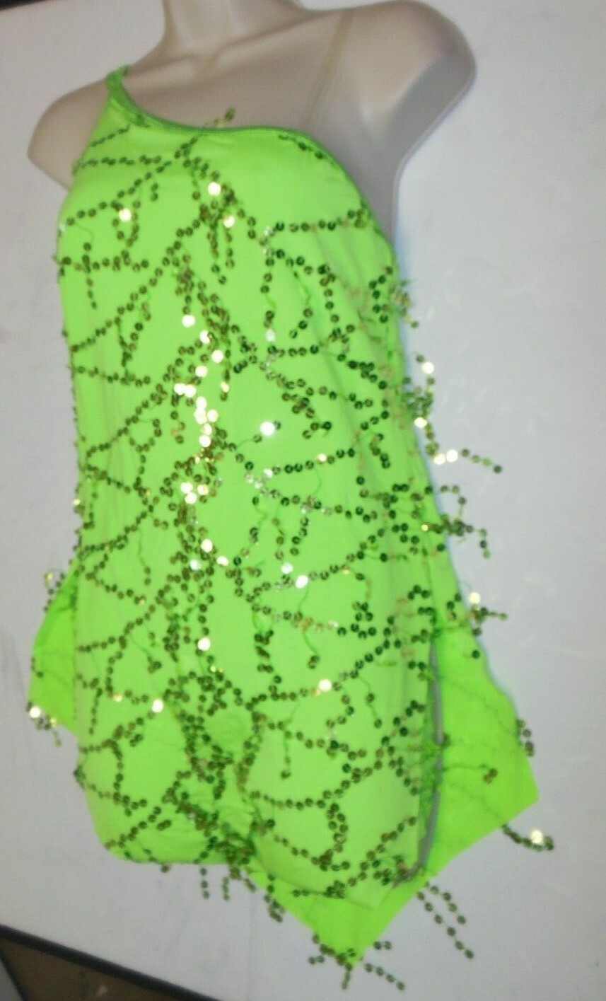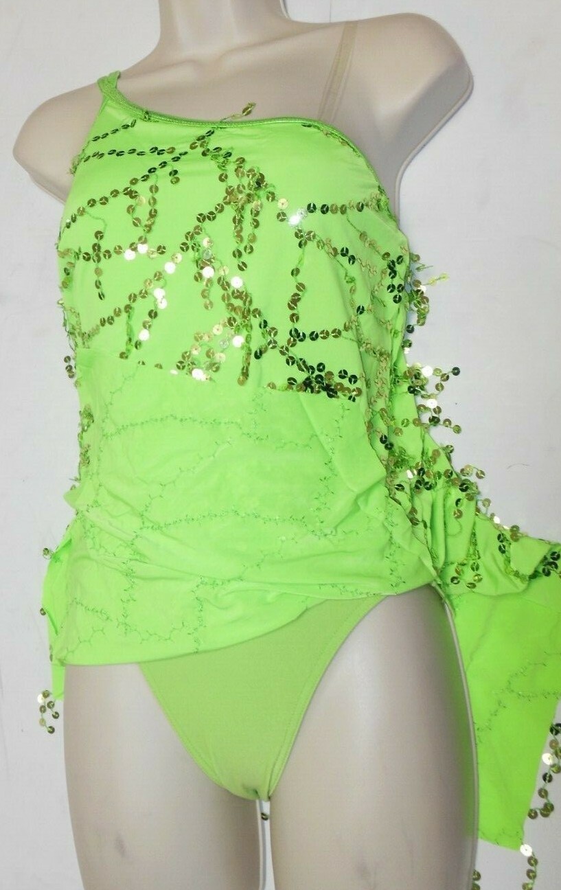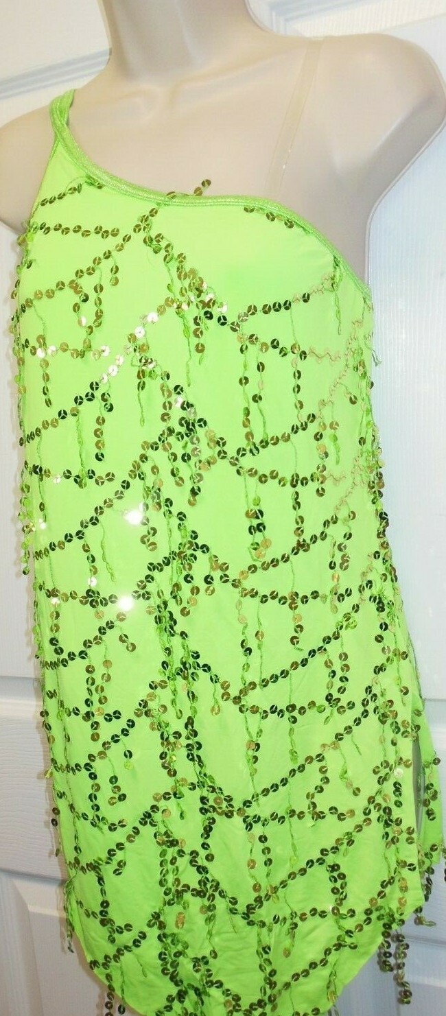 LATIN BALLROOM SALSA SEQUIN DROP DRESS 1 SHOULDER DACE JAZZ Lime 60