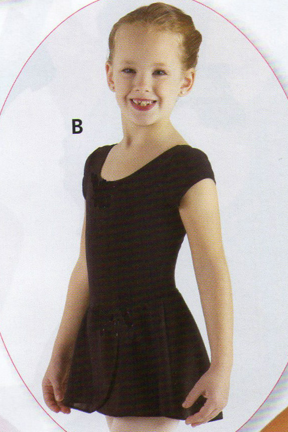 Capsleeve ballet dress in black pink rosette trim girls Princess seam wrap