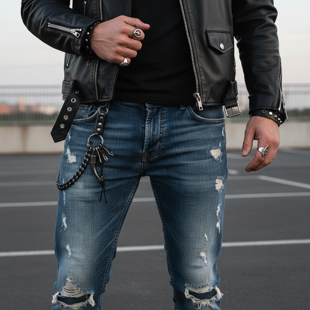 Men Antique Silver Metal Wallet Chain Key Horn Spike Leather Rider Trucker Jeans