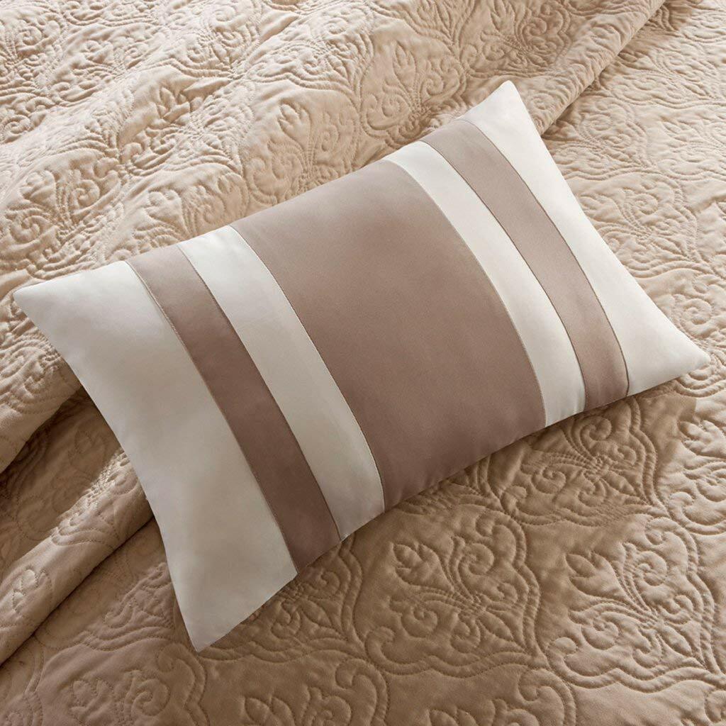 BROWN IVORY BLOCK 7p Full Queen QUILT SET : MEDALLION MATELASSE COVERLET