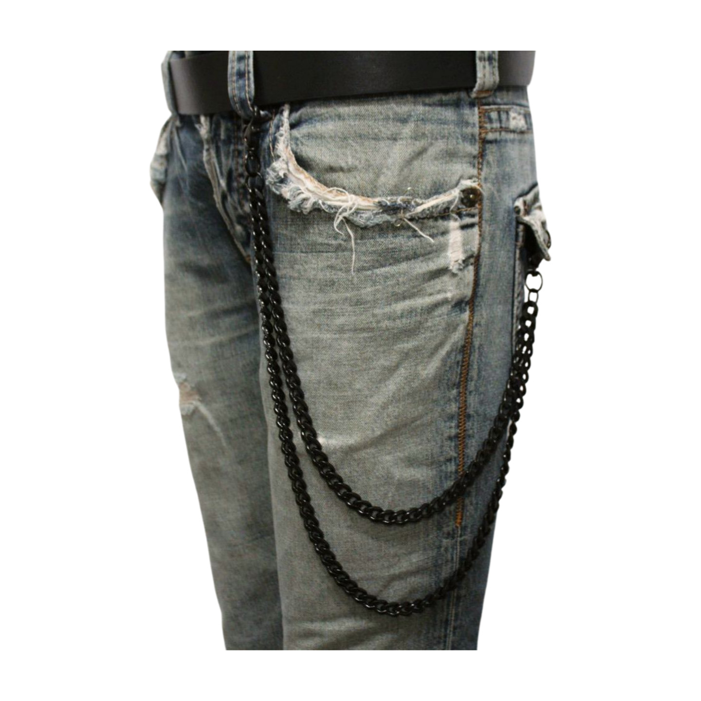 Men Black Metal Wallet Chain Links 2 Strands Keychain Motorcycle Biker Trucker