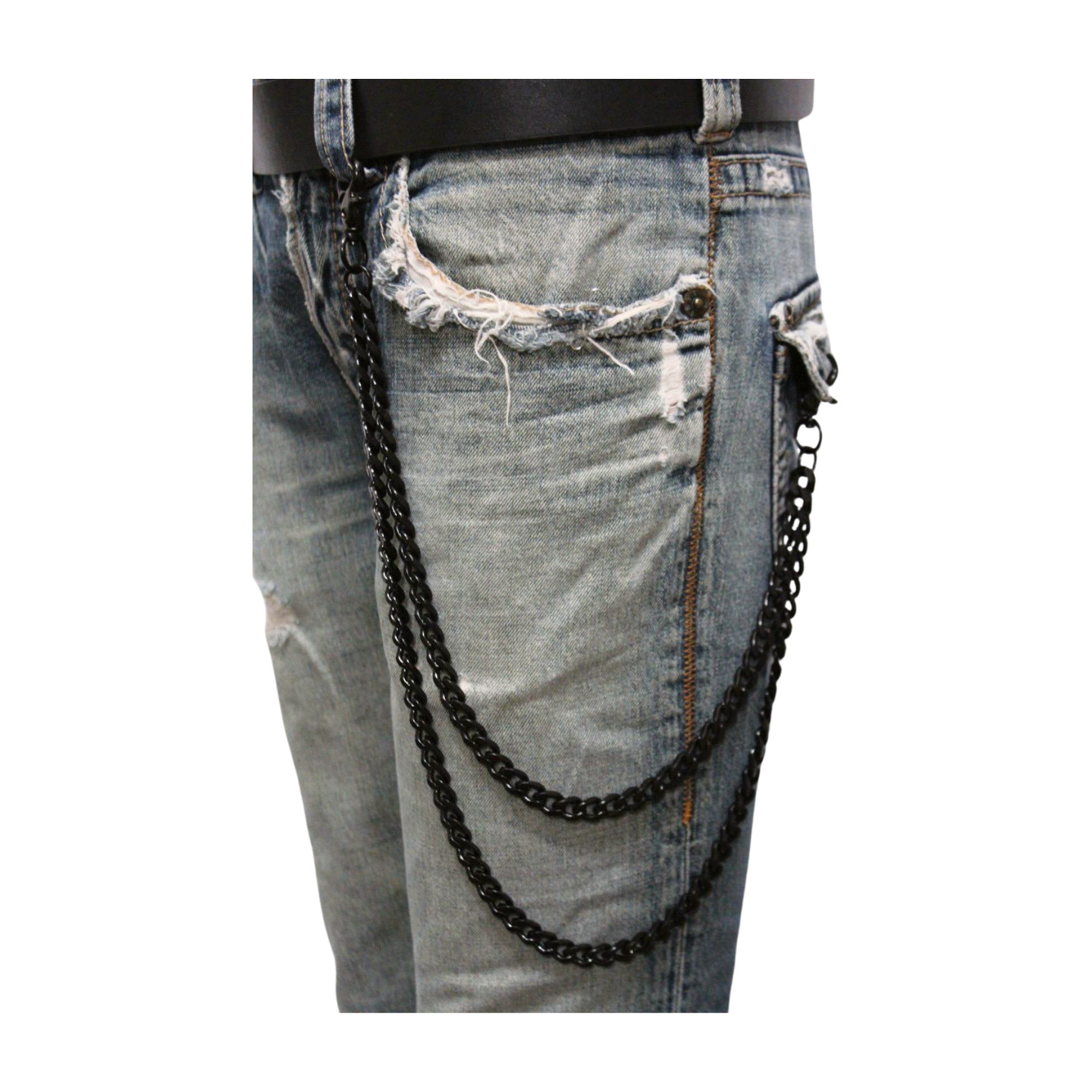 как выглядит Men Black Metal Wallet Chain Links 2 Strands Keychain Motorcycle Biker Trucker фото