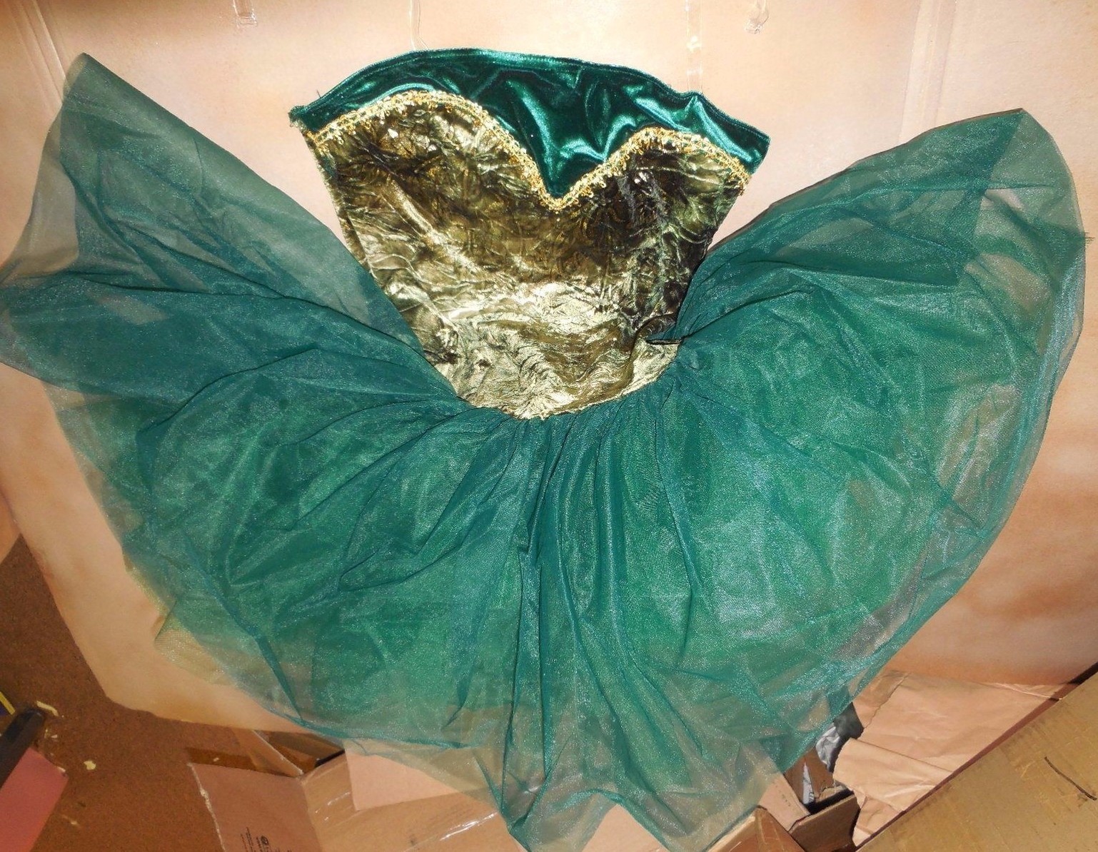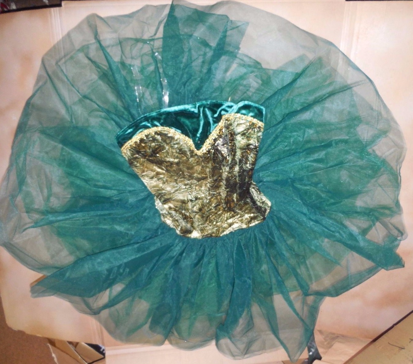 Gold Gilded Short Ballet Costume Forest green Graduated Tutu Velvet ladies