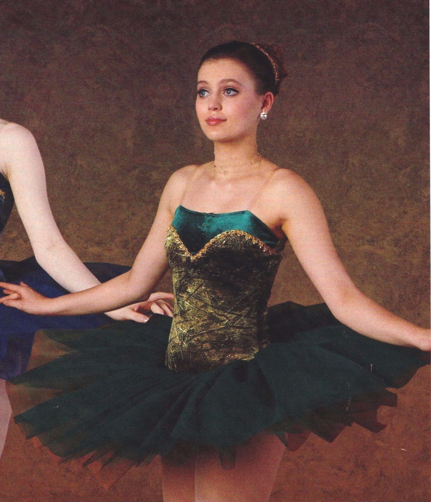 как выглядит Gold Gilded Short Ballet Costume Forest green Graduated Tutu Velvet ladies фото
